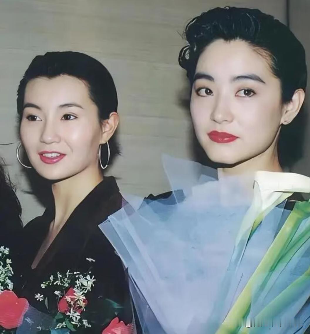 张曼玉和林青霞年轻时。 张曼玉和林青霞之前的一张合照,均属于辨识度很高的一种美。