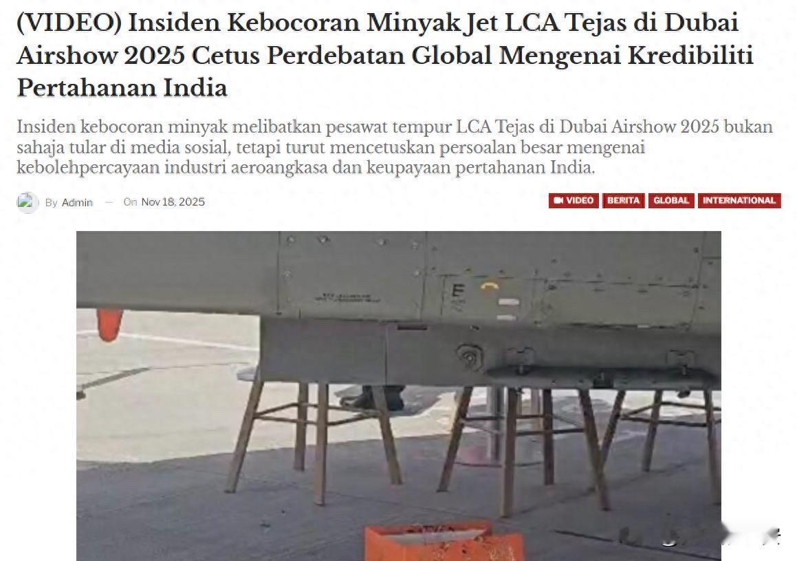 漏油抢镜? 印度又出名了 迪拜航展上,印度“光辉”战斗机贡献了年度最尴尬名场面——静止停泊时腹部大面积漏油,印方人员手忙脚乱用购物袋接油,被多国媒体拍成“经典翻车视频”。而隔壁巴基斯坦“枭龙”Block3却风光无限,霹雳-15E、CM-400AKG两款机载武器引发现场围观,订单接到手软。 “光辉”这波操作,彻底坐实“全球最拉胯四代机”称号。立项30年,发动机靠美国F-404“续命”,量产机型甚至用“白板机体”充数;印度空军嫌它性能烂,宁可用米格-29;出口屡屡碰壁,马来西亚、阿根廷看了都摇头。迪拜漏油?不过是它“质量稀碎”的日常翻版。 反观“枭龙”,从歼-7改进而来,中巴合作省下90%研发成本,反而搞出100多架机队。迪拜航展上,它凭实战战绩(“五七”空战打S-400)和先进武器(霹雳-15E射程180公里、CM-400AKG反舰反辐射)成了香饽饽,阿塞拜疆直接下单40架。 印度总吹“光辉”是“纯国产骄傲”,结果被现实打肿脸:盲目追求国产,不如中巴合作实在;砸钱堆不出技术,只会堆出“漏油笑话”。“枭龙”用实力证明:军工不是闭门造车,是实战打磨+合作共赢。 印度“光辉”还有救吗?“枭龙”能彻底碾压它吗?评论区聊聊,军工竞争中“合作”和“自研”谁更靠谱!