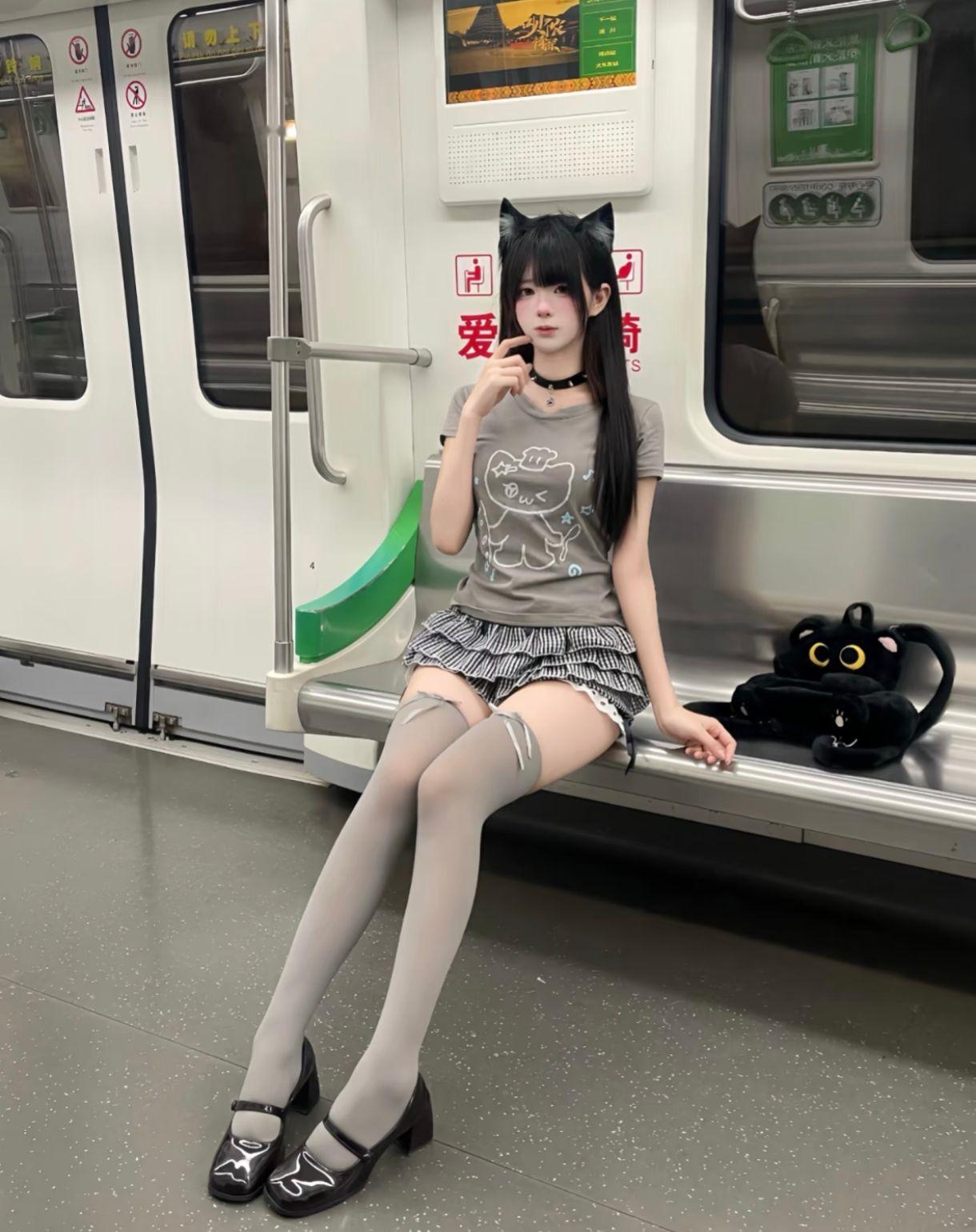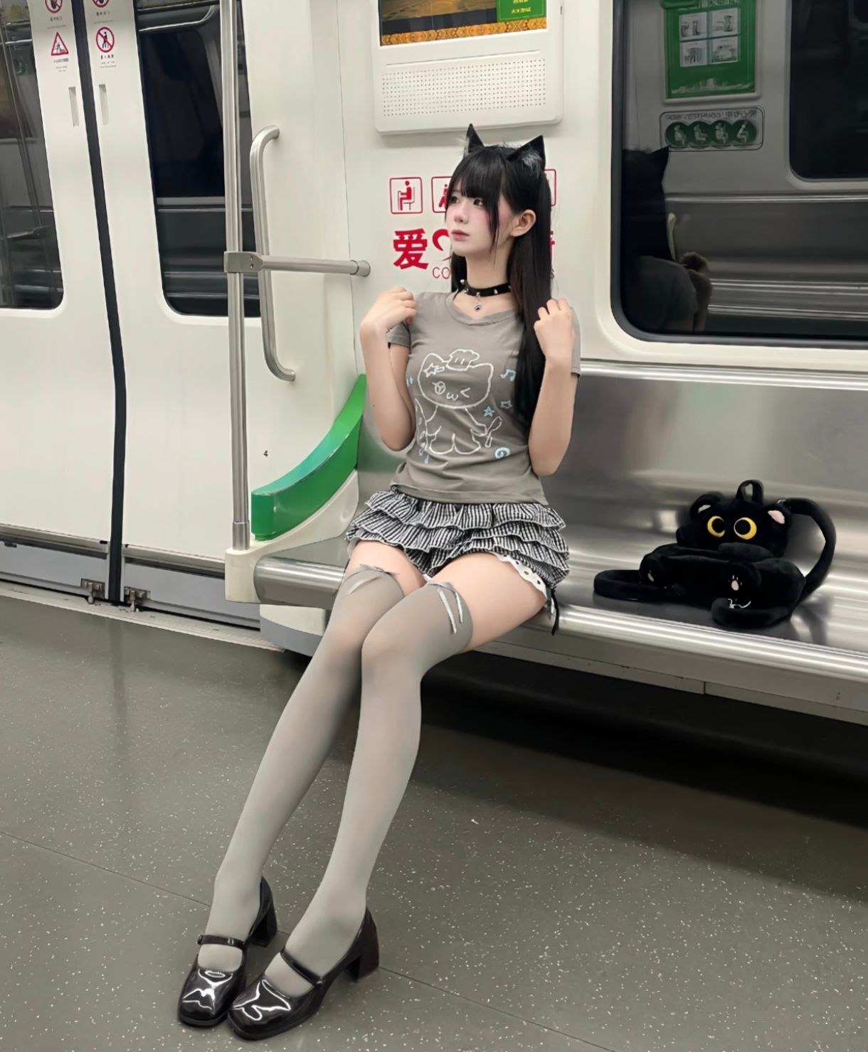 地铁丝袜美女辣妹穿搭 每日分享 ootd穿搭 唐朝诡事录 袜子穿搭