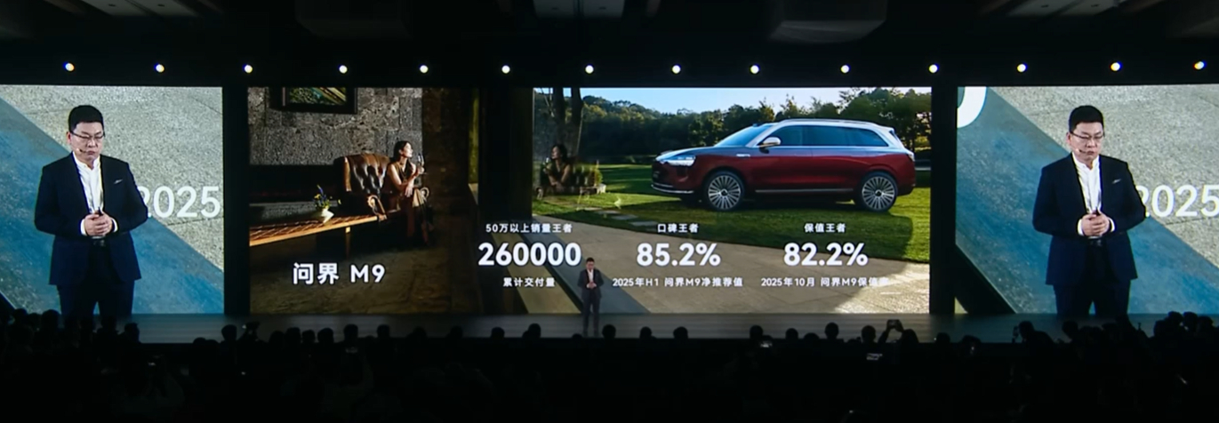 鸿蒙智行全系累计交付100万辆+!10月成交均价39万元 -尊界 S800上市175天拿下18000台大定 -问界 M9累计交付量260000 台