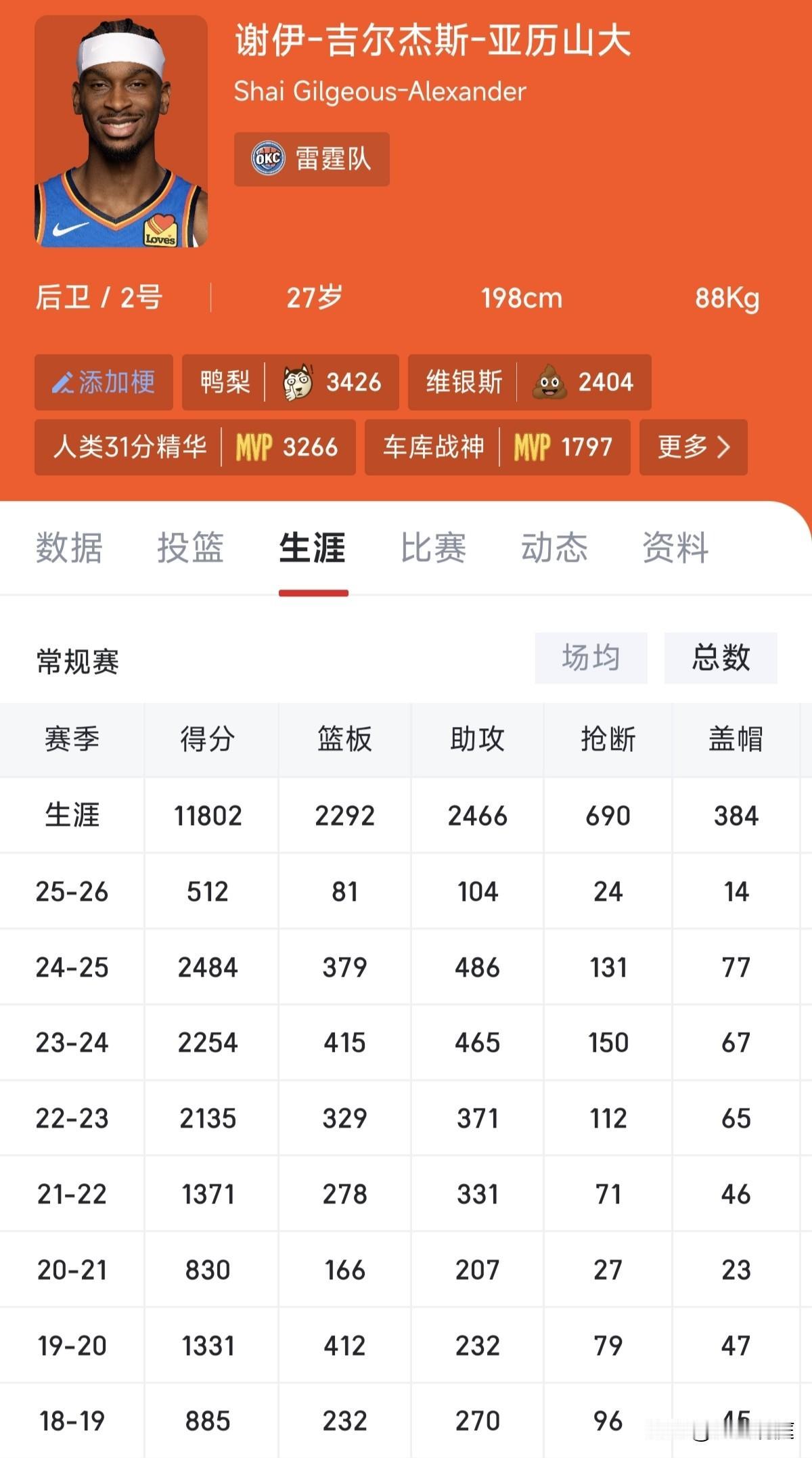 本赛季第一个500分球员出现,今天比赛结束后,雷霆当家球星亚历山大总得分达到了5