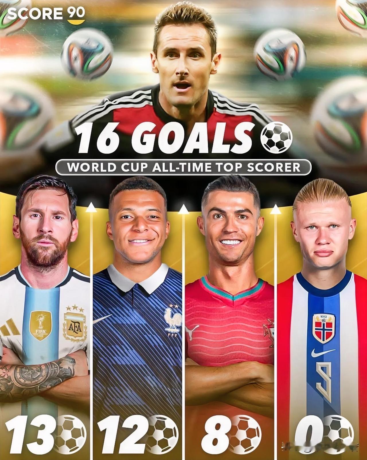 姆巴佩很可能会打破克洛泽的世界杯记录。只是说破个克洛泽的记录,现在世界杯扩军了,鱼腩球队更多了,如果阿根廷运气好先踢几个弱队,梅西运气好点再多进四个球就可以先比姆巴佩破克洛泽记录了,不过大概率梅西没啥可能性,毕竟年龄大了,之前看了一个梅西美国大联盟的集锦,他的速度与频率下降的太厉害了,这次世界杯梅西更多的作用很可能是是稳定军心。 我上届世界杯就没有完全关注,可能是和年龄有关系,但个人觉得还是和比赛的精彩程度有关系。只能说姆巴佩与哈兰德赶上好时候了,记得托马斯穆勒两届世界杯,不到30岁已经打进10球。当年他是最有希望打破的,但结果,只能说那时候世界杯欧洲杯都是强强对话,死亡之组不止一个。 自从世界杯与欧洲杯扩军后可看性真的是急剧下降,比如有一天中国国家队进军世界杯了,然后和法国一组,那姆巴佩不要说克洛泽的记录,方丹的记录都能打破。