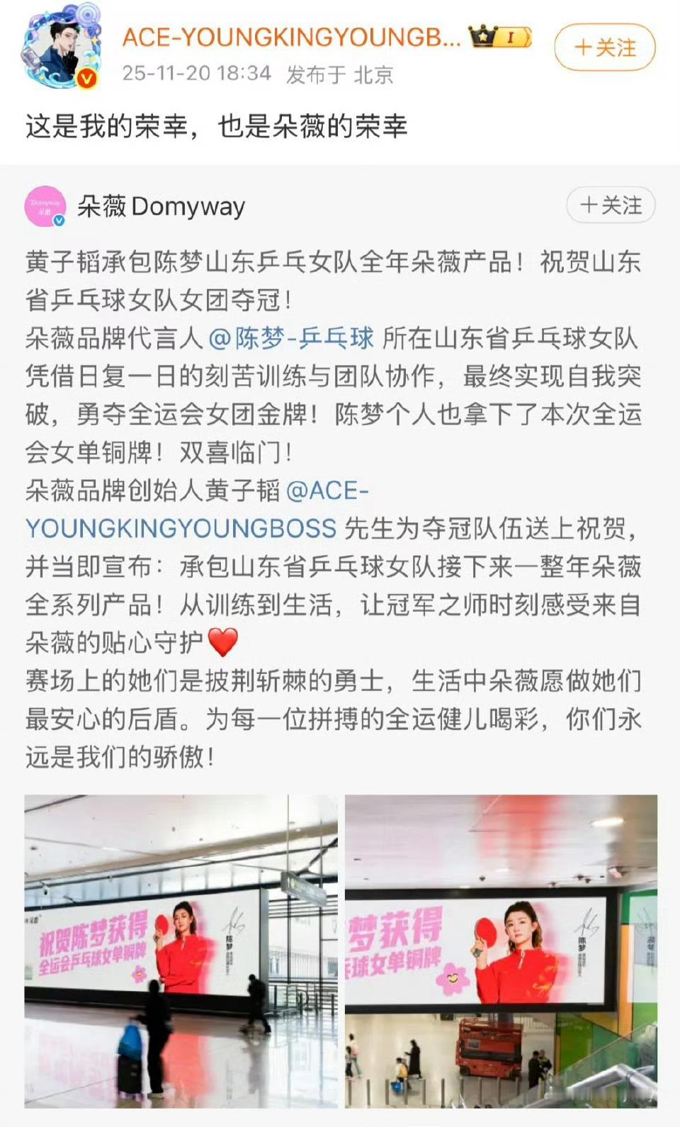 跨界暖心名场面!陈梦带领山东女乒斩获全运会女团冠军,老乡黄子韬直接送上全年卫生用