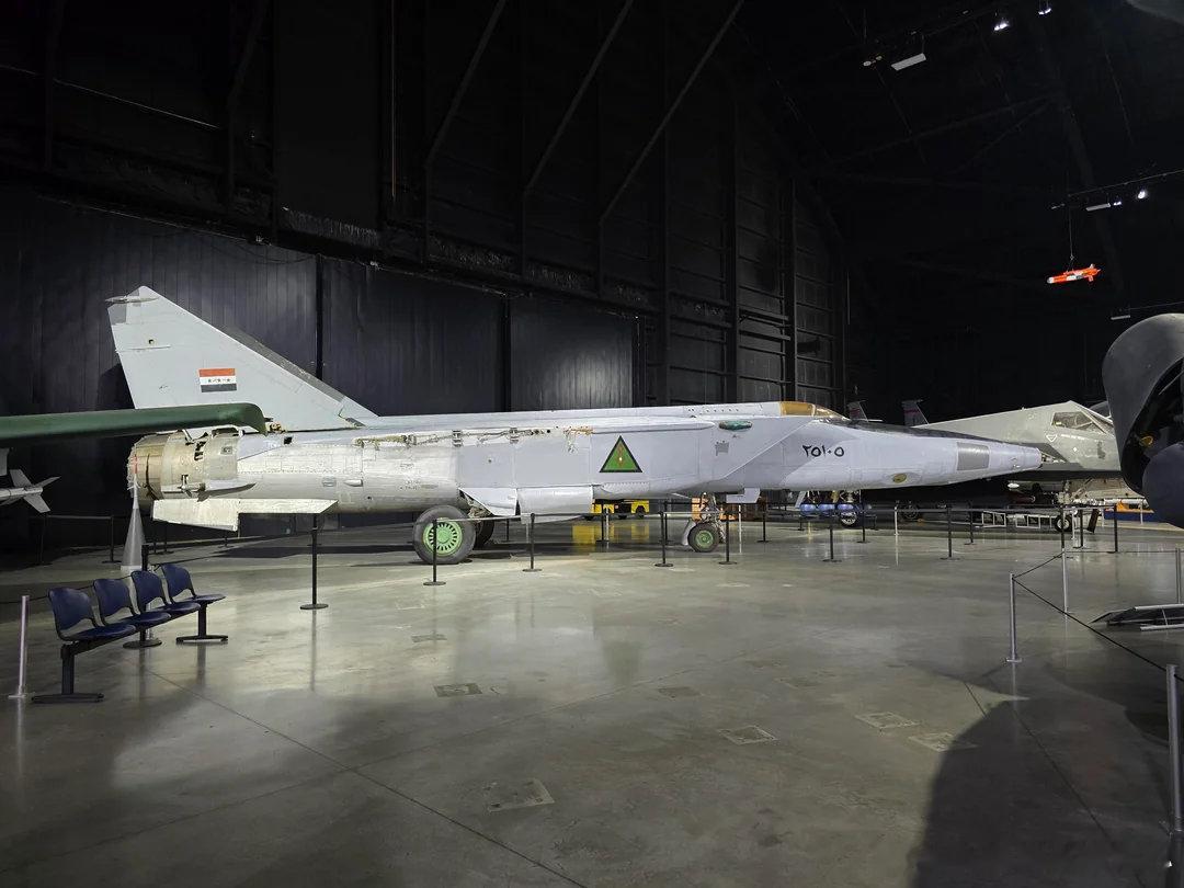 这架MiG-25RB于2003年被美军发现,当时埋在巴格达以西约250公里的Al Taqaddum空军基地附近的沙地中,正值伊拉克自由行动初期。它被埋起来是为了防止其在地面上被联军飞机摧毁。该飞机被回收时并不完整——机翼未能找到,垂直尾翼为运输而拆除。飞机于2006年运抵美国空军国家博物馆。