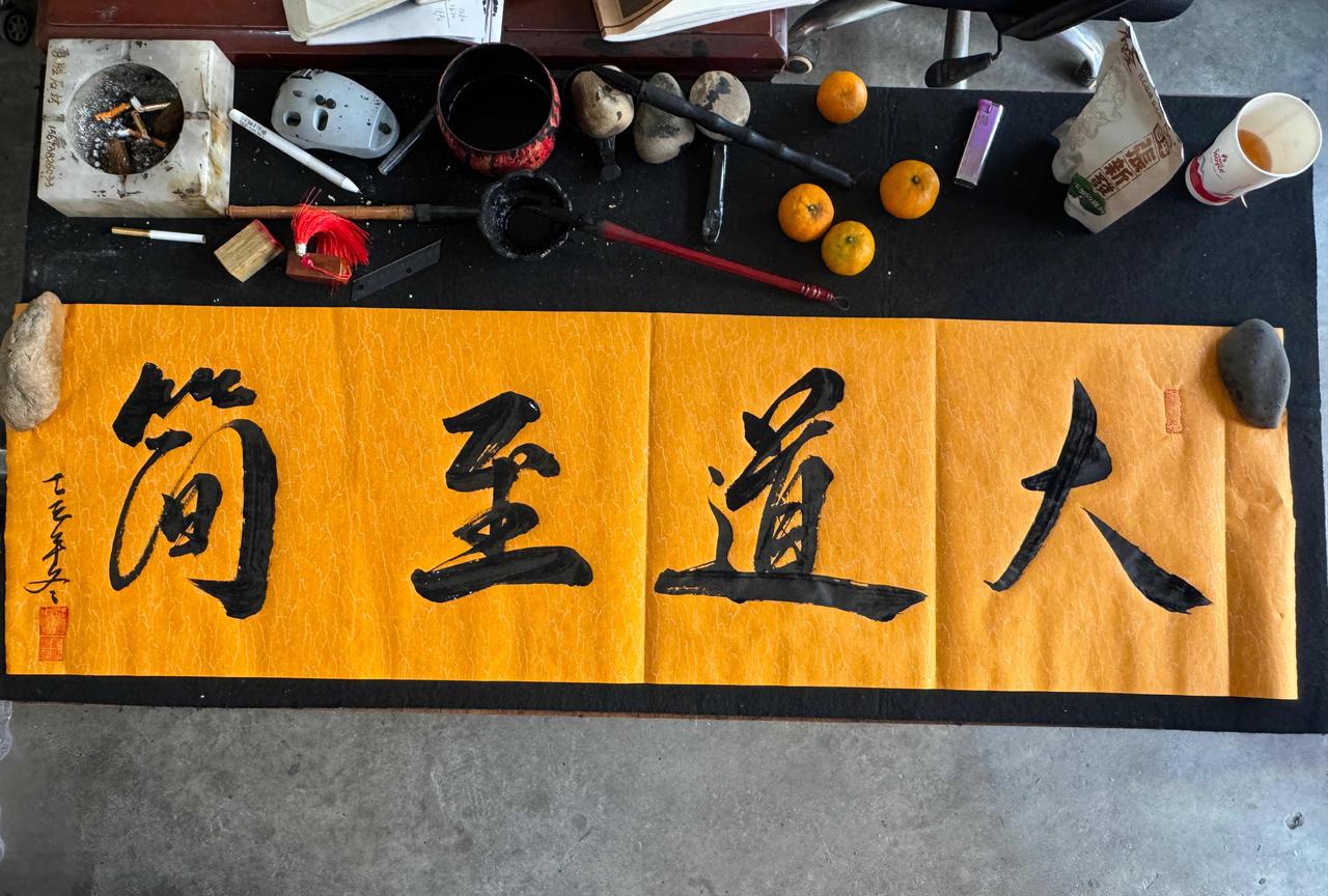 今天走访一个朋友,看到朋友在写毛笔字!看字的一瞬间,不知道怎么形容,瞬间让我感觉对文化的一种敬佩, 毛笔字对是我们中华文明的一种传承,在当下这社会中,还能每天坚持写毛笔的朋友真的只有这么一个!虽然不是什么名家,但是他每天都坚持练习,也是对文化的一种敬畏! 我的理解比较浅薄,毛笔字为什么好看,我觉得真的毛笔字体的每一笔每一话,都刻画对文字的理解和本人性格的一种诠释,笔下有思想有感情,写出来的字真的就是一个人,真应了一句话,叫见字如人!中国文化博大精深,每次看到传承都能被深深的震撼 附一张朋友写的大道至简,你们觉的字里写出了大道至简的意境了嘛
