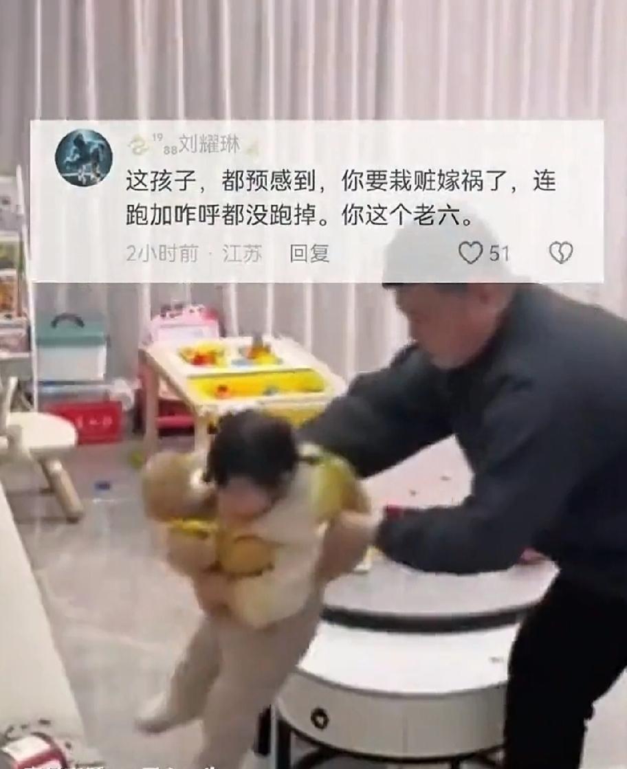 11月20日,江苏搞怪的一家子,又上演了一场妙趣横生的搞笑剧。 爸爸带娃,他给宝宝一个玩具,让她抱着玩。宝爸翘着二郎腿,一边瞅着宝宝,一边悠然自得的嗑着瓜子玩手机。 宝宝正抱着玩具玩,忽然听到了“哗啦”一声响。循声望去,只见爸爸放在腿上的瓜子盒打翻了,瓜子撒落一地。宝宝立即意识到,不好,爸爸要拿我开心,把撒落瓜子的锅甩在自己身上。我可不想帮他背锅,撒腿就跑。 宝宝的预判没错。爸爸甩开脚丫子,追上来了,一把抱住她。把她放在撒落瓜子旁边,然后一溜烟到了房间。 宝妈听到了声音,过来察看。看到女儿站在满地的瓜子旁边,问她怎么回事? 宝爸还没等女儿回答,拎了一件衣服走出房间,抢先答道:我就弄个衣服的时间。 宝宝本想着解释,爸爸一插嘴,彻底解释不清了。宝宝心里叹口气,唉!又让爸爸得逞了。 这一家子挺搞怪的,但也增进了一家子人和睦相处。 爸爸打翻瓜子让女儿背锅宝爸带娃 幸福逗比一家人 搞怪一家子 晒图笔记大赛 -