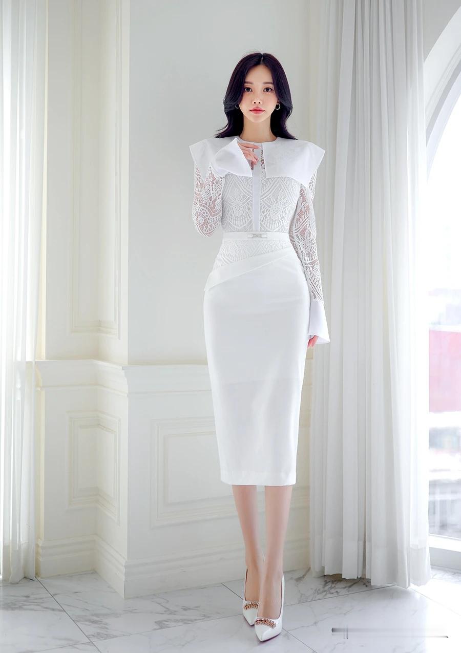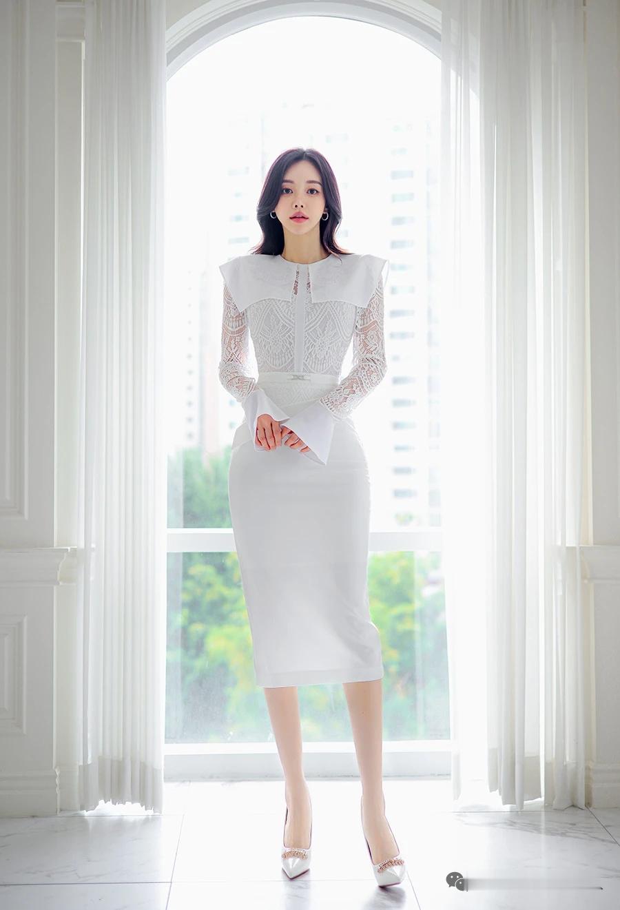 韩风女神 | 孙允珠,蕾丝衫、包臀裙,曲线婀娜,身材太棒了