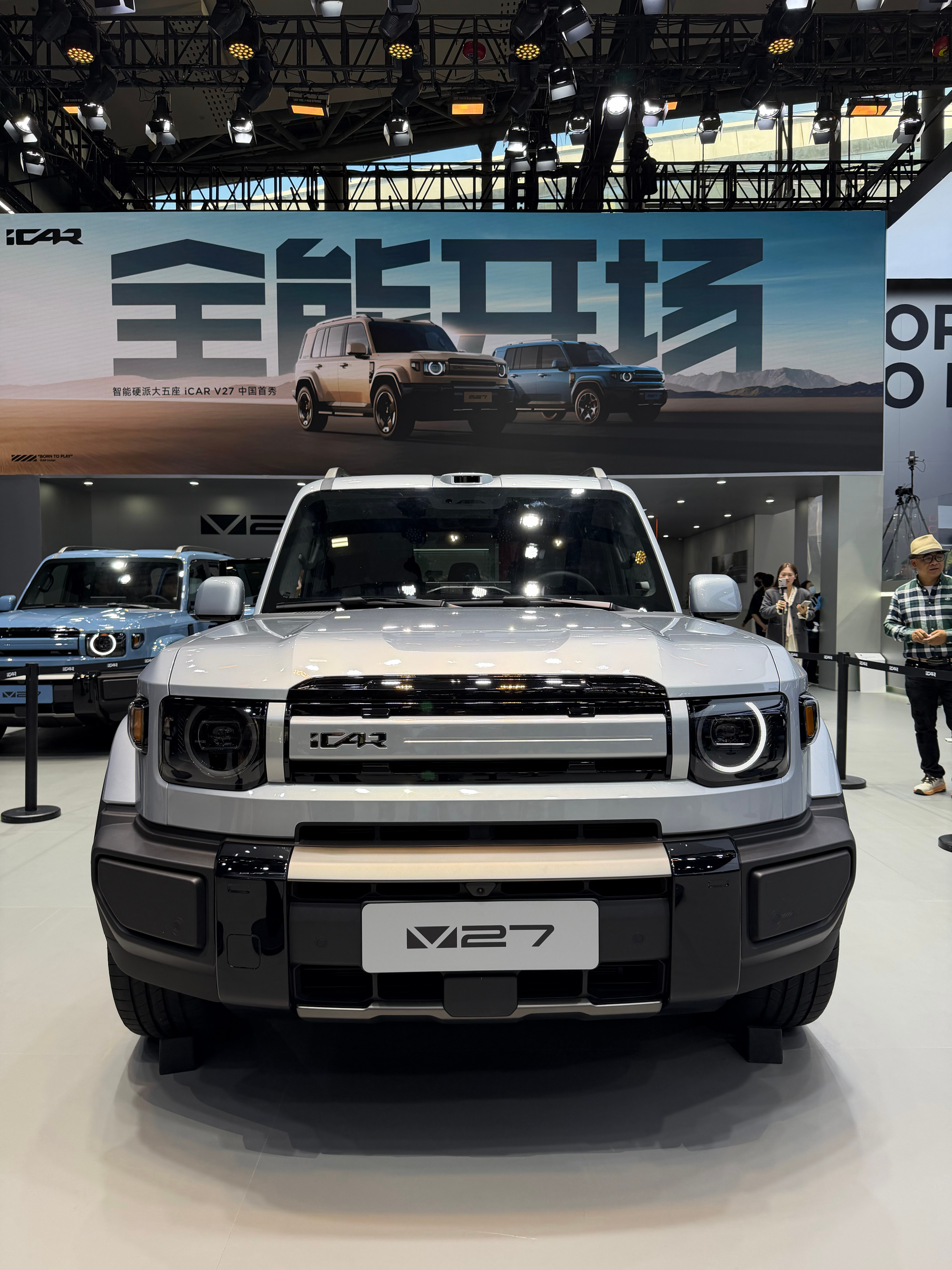 今年广州车展上iCAR V27确实是一款值得期待的车型外观走的是硬派SUV路线,看着就很精神,还加了星际舷窗双天幕、科技岛这些特别的设计,跟那些千篇一律的车比,一眼就能记住!车内还有不少储物的地方,放个水杯、零食啥的都方便,主驾座椅还能调、能通风加热,坐着也舒服。安全和智能这块也到位,车身是按中欧双五星安全标准做的,用了不少高强钢,心里踏实;还装了高阶智能辅助系统,开车的时候能帮上不少忙,对于新手也能轻松点~