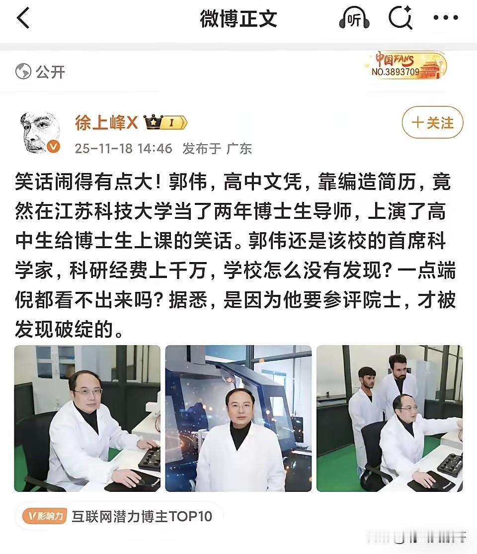 江苏科技大学首席科学家郭伟,原来是钻了这个空子:把跟自己名字拼音“GuoWei