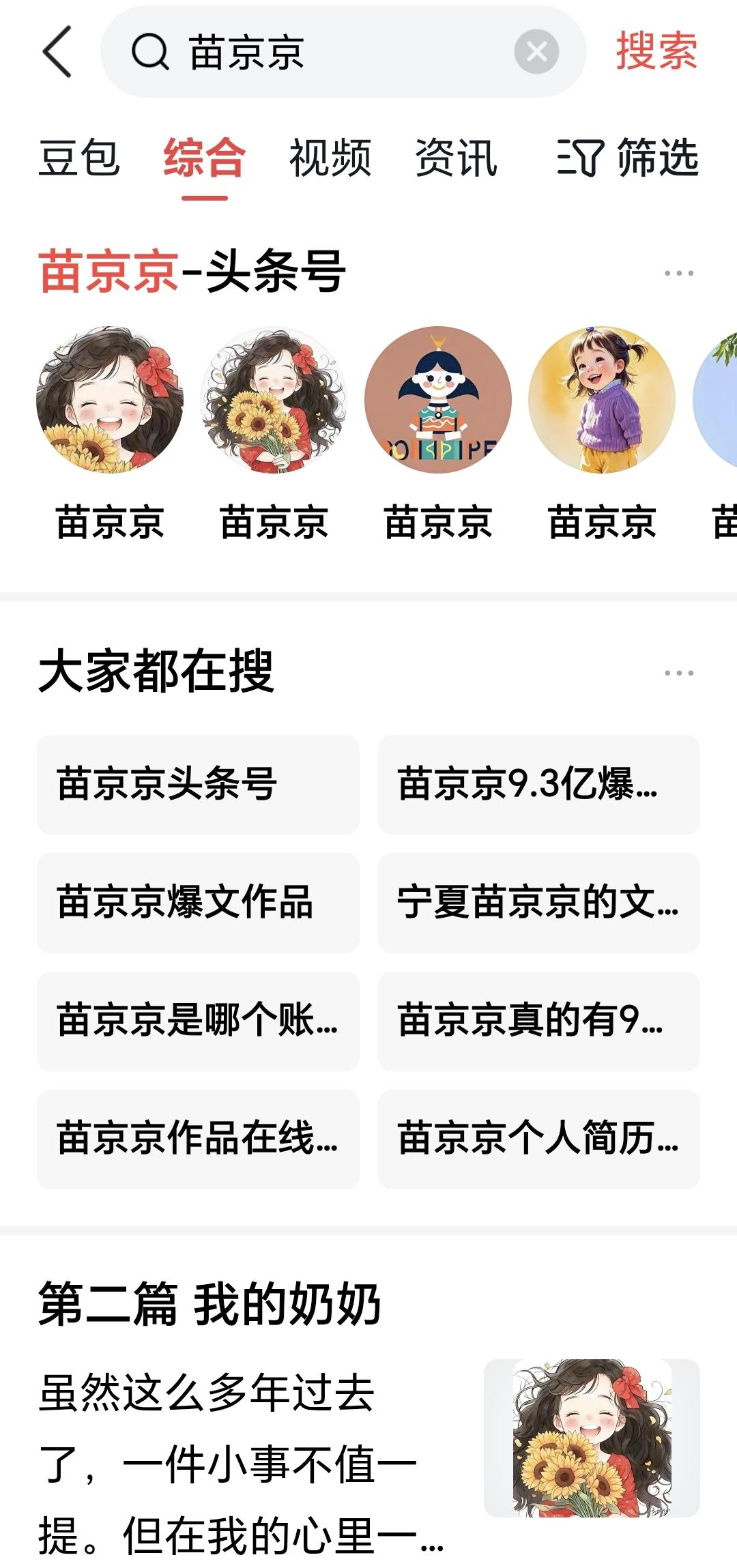 有一位朋友关注了苗晶晶,他说苗晶晶写的内容比较正向,因此我也想关注一下。 结果我一搜索苗晶晶三个字,出来十多个账号,到底哪一个是真的? 现在理解了,做名人可真不容易啊,连自己的名字都可能不属于自己。 苗晶晶