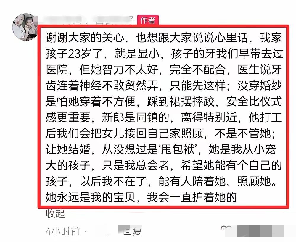 23岁智力残疾女孩嫁9.9万彩礼,没穿婚纱就被骂“卖女儿”?键盘侠真该停一停了!