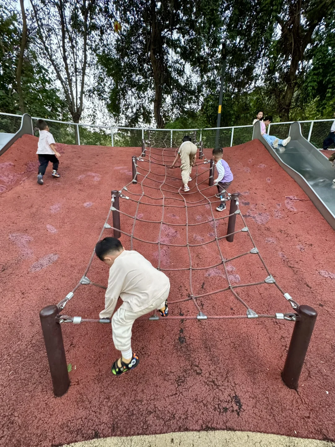 一期入口👉景观公园👉二期入口👉山脚下儿童游设施👉露营野餐👉徒步爬山👉山林中走走停👉登顶空中栈道👉看城市高铁、落日夕阳👉山顶图书驿站