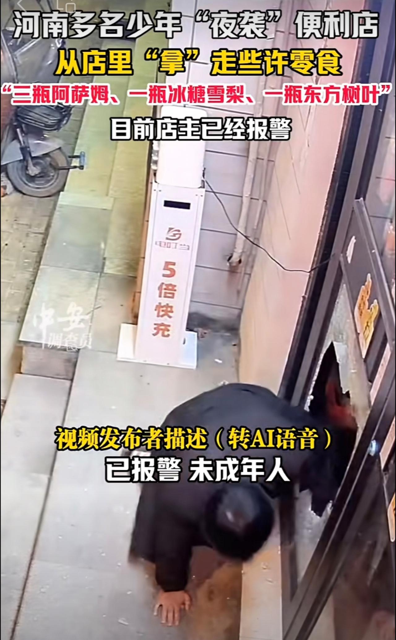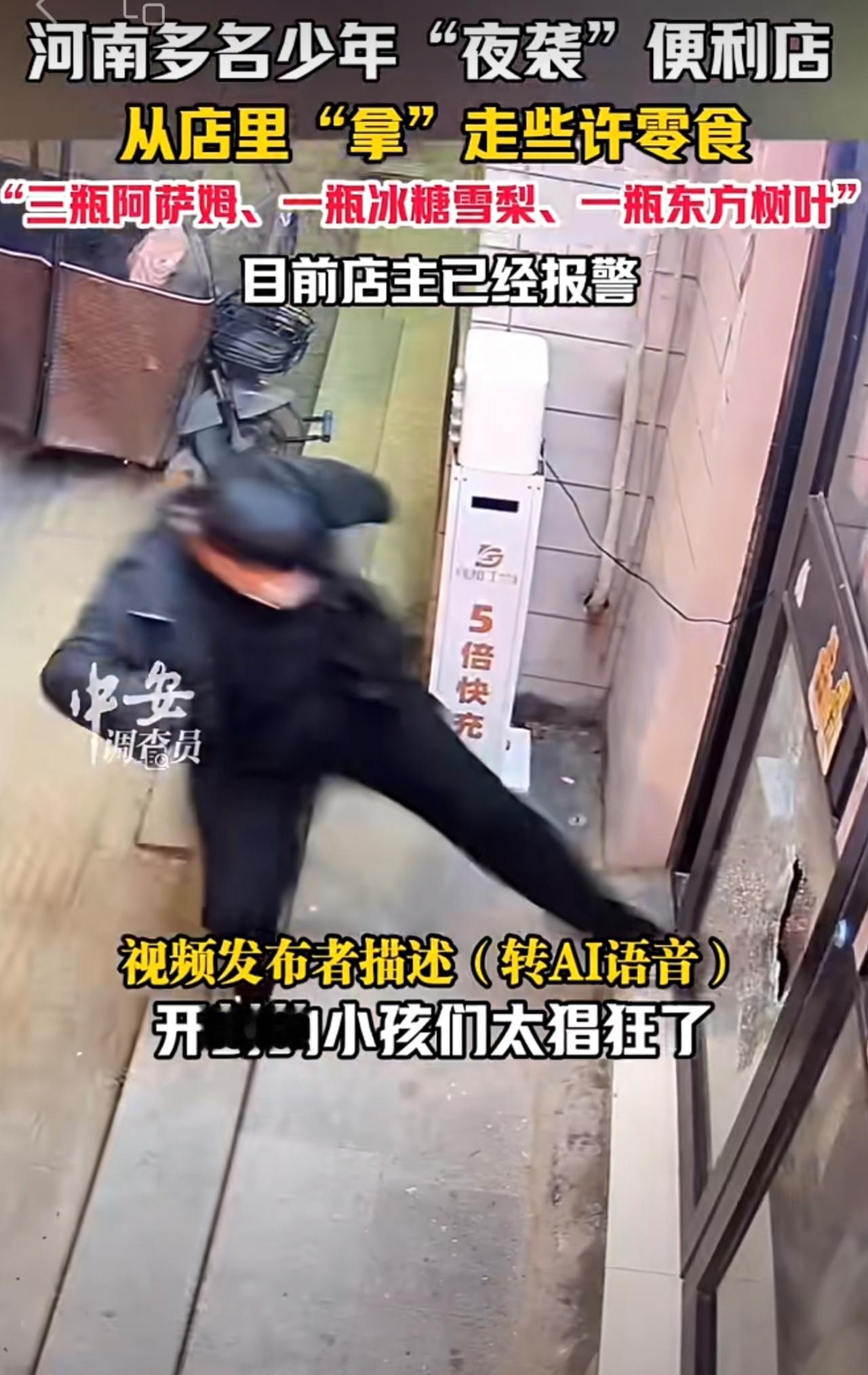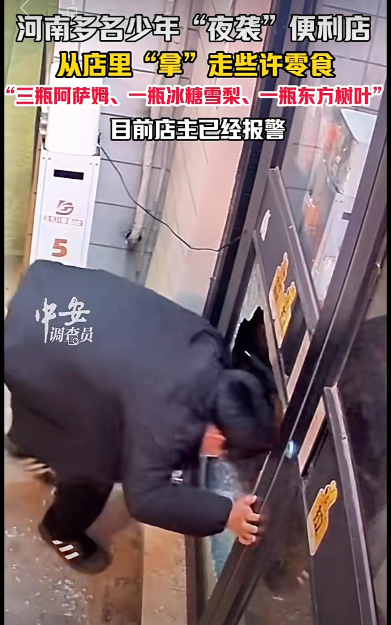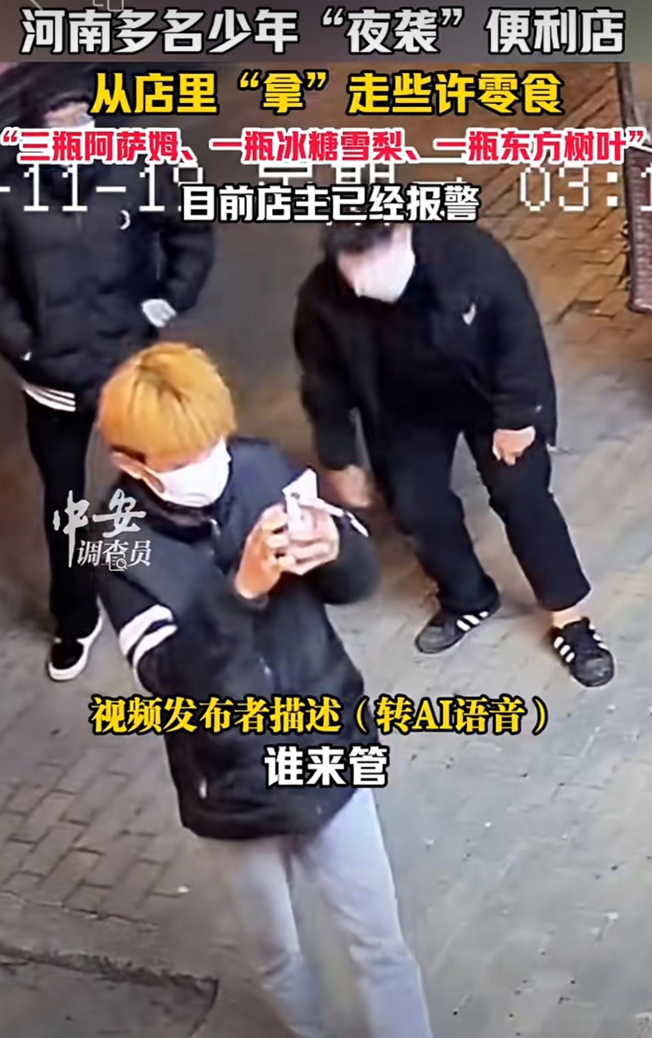 11月19日,河南开封。河南多名少年“夜袭”便利店,从店里“拿”走些许零食,“三瓶阿萨姆、一瓶冰糖雪梨、一瓶东方树叶”。目前店主已经报警。(编辑:昊昊)