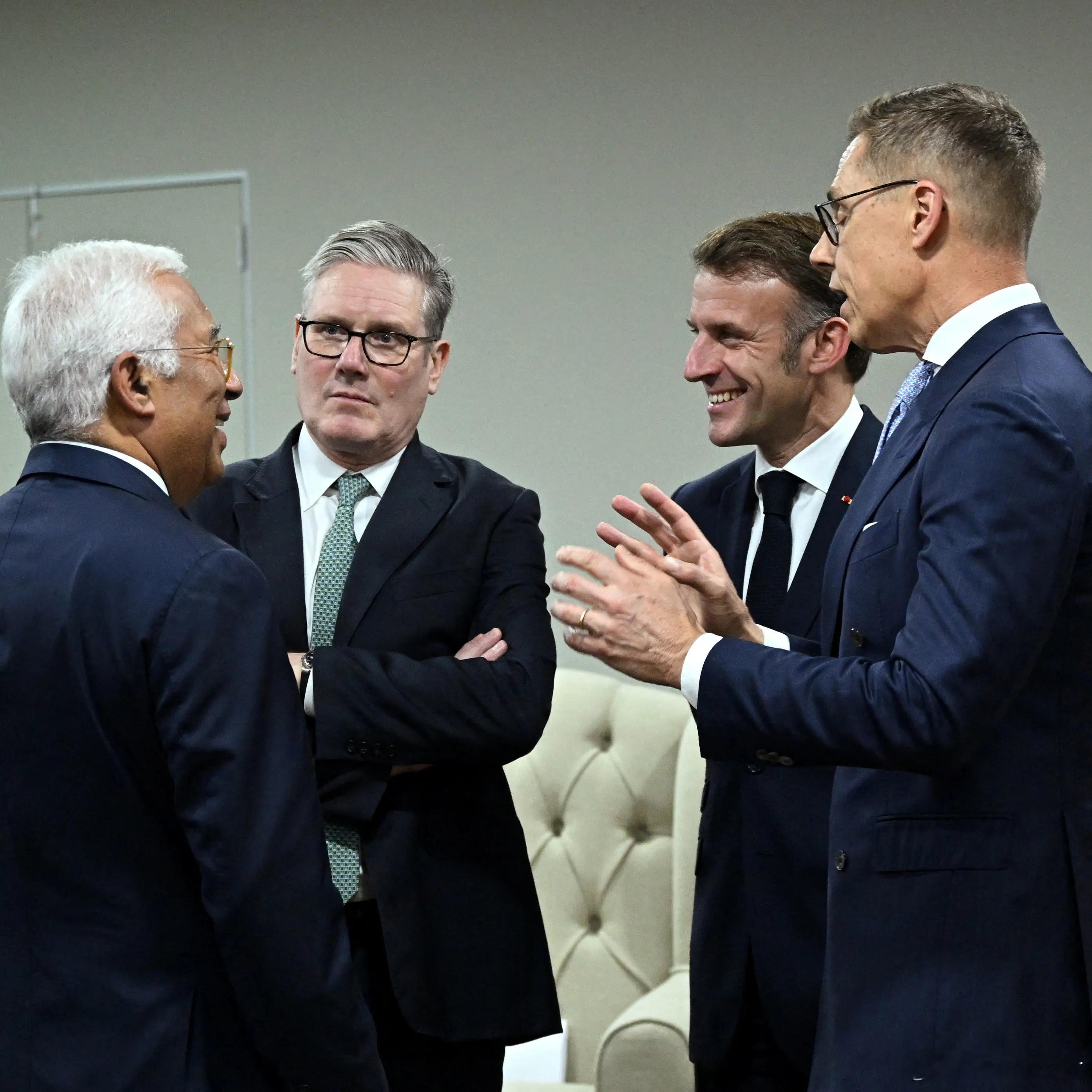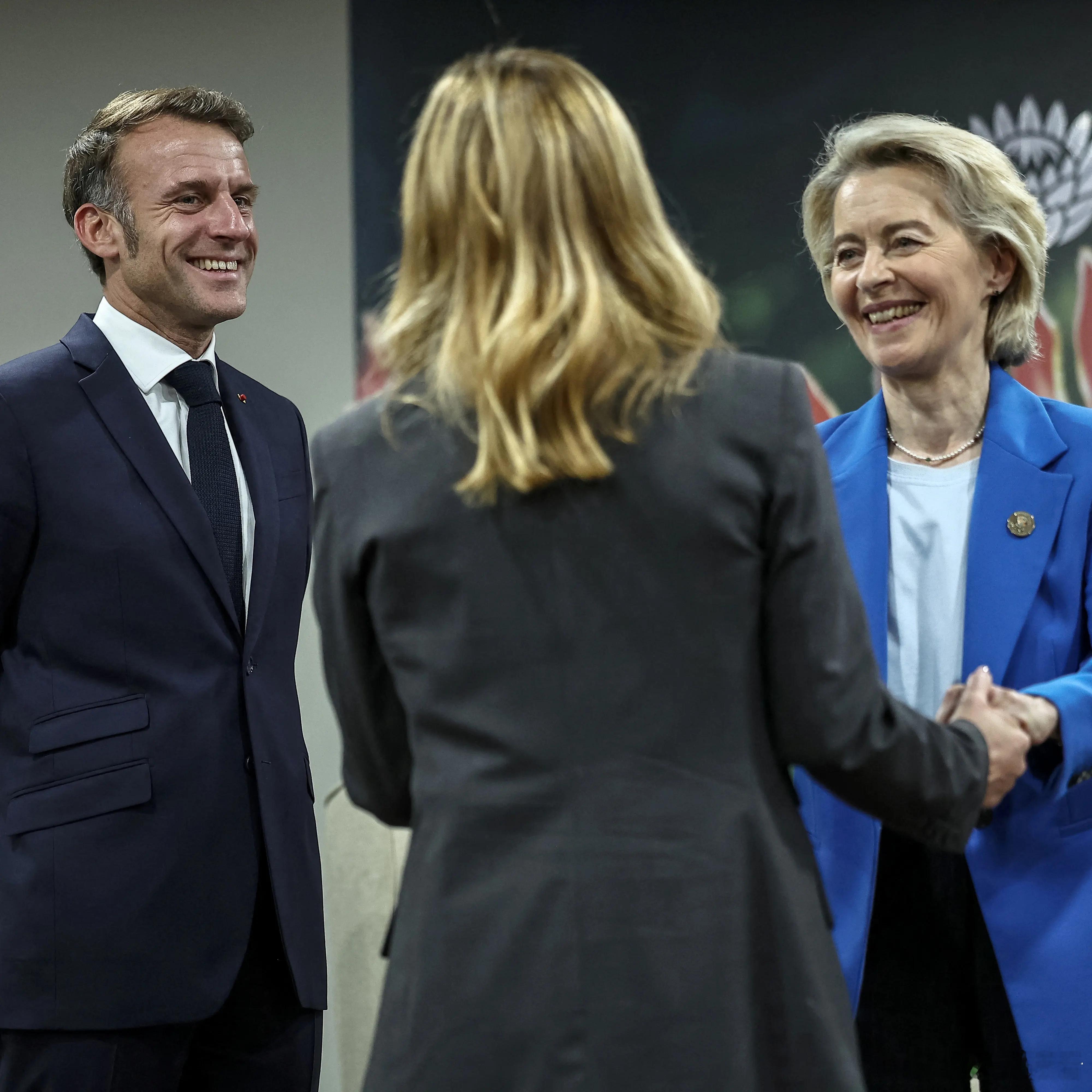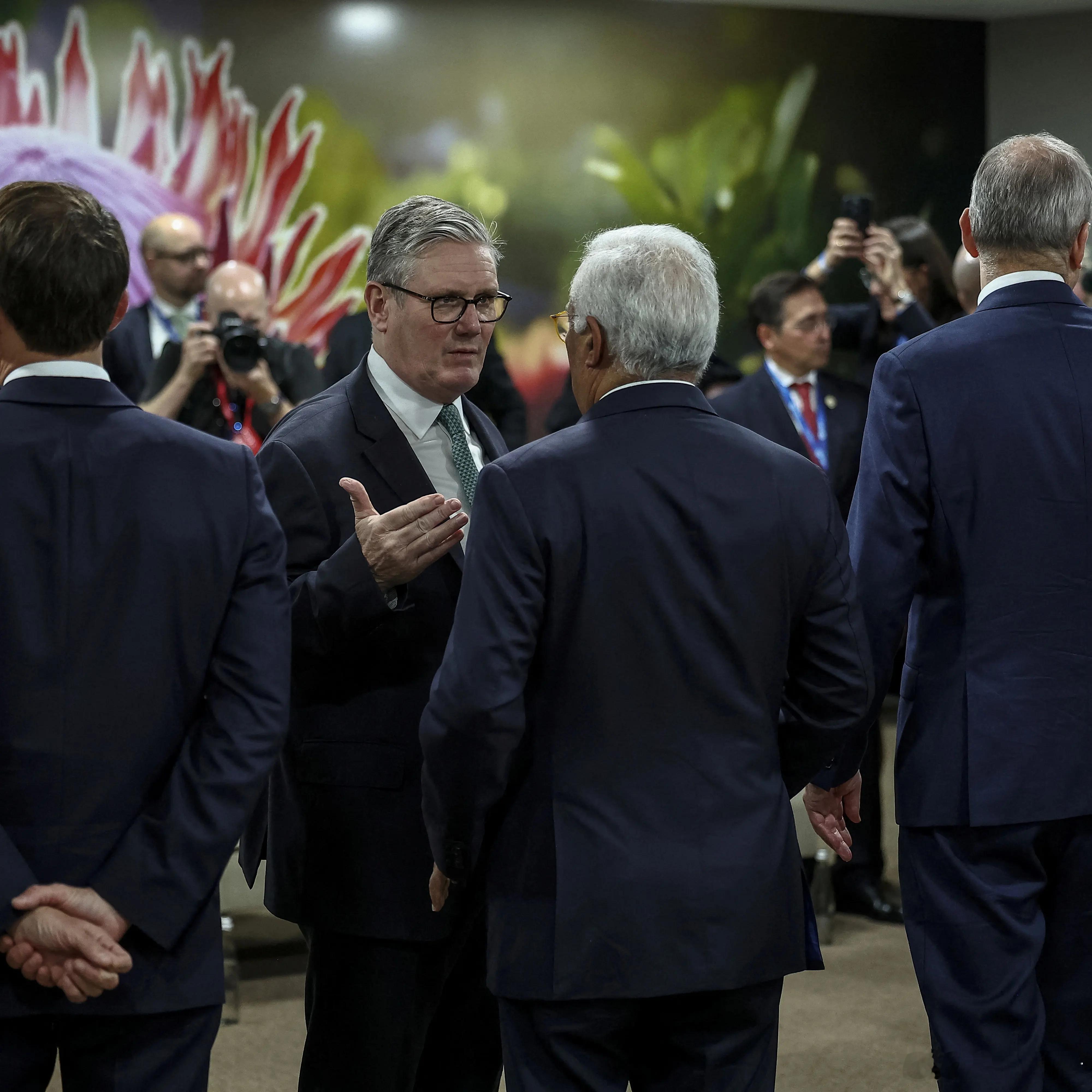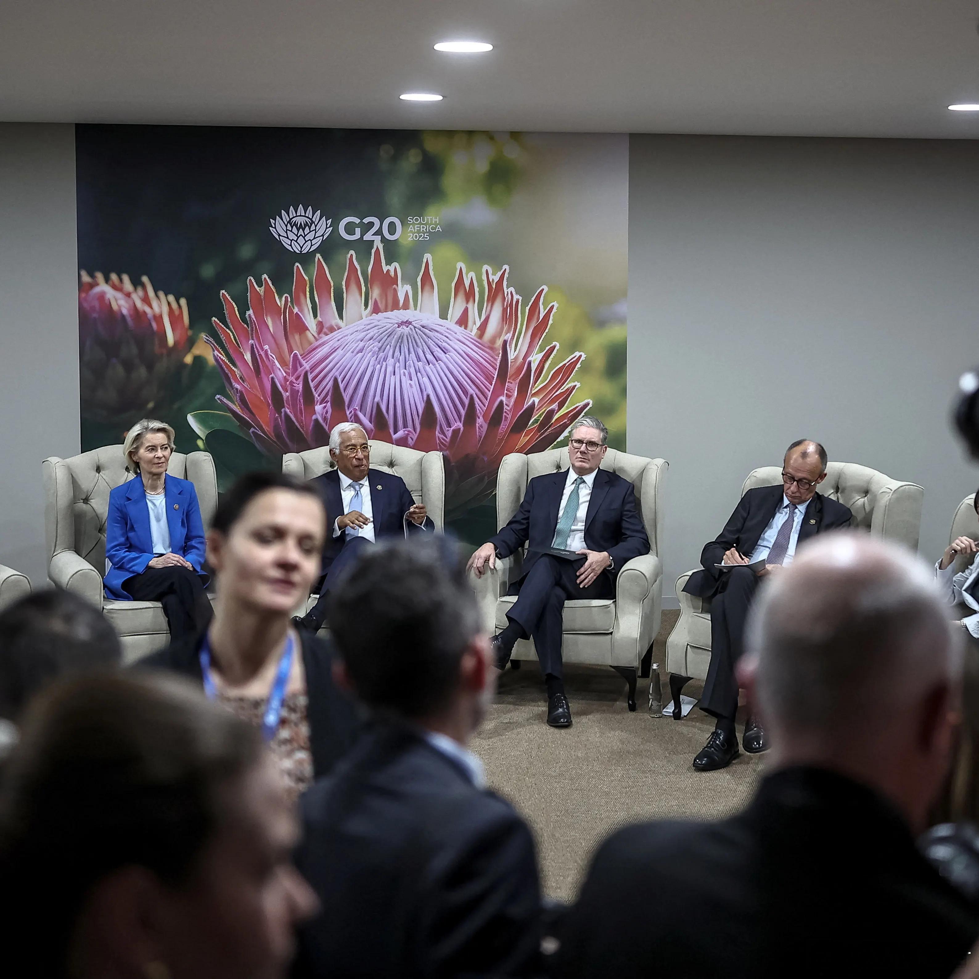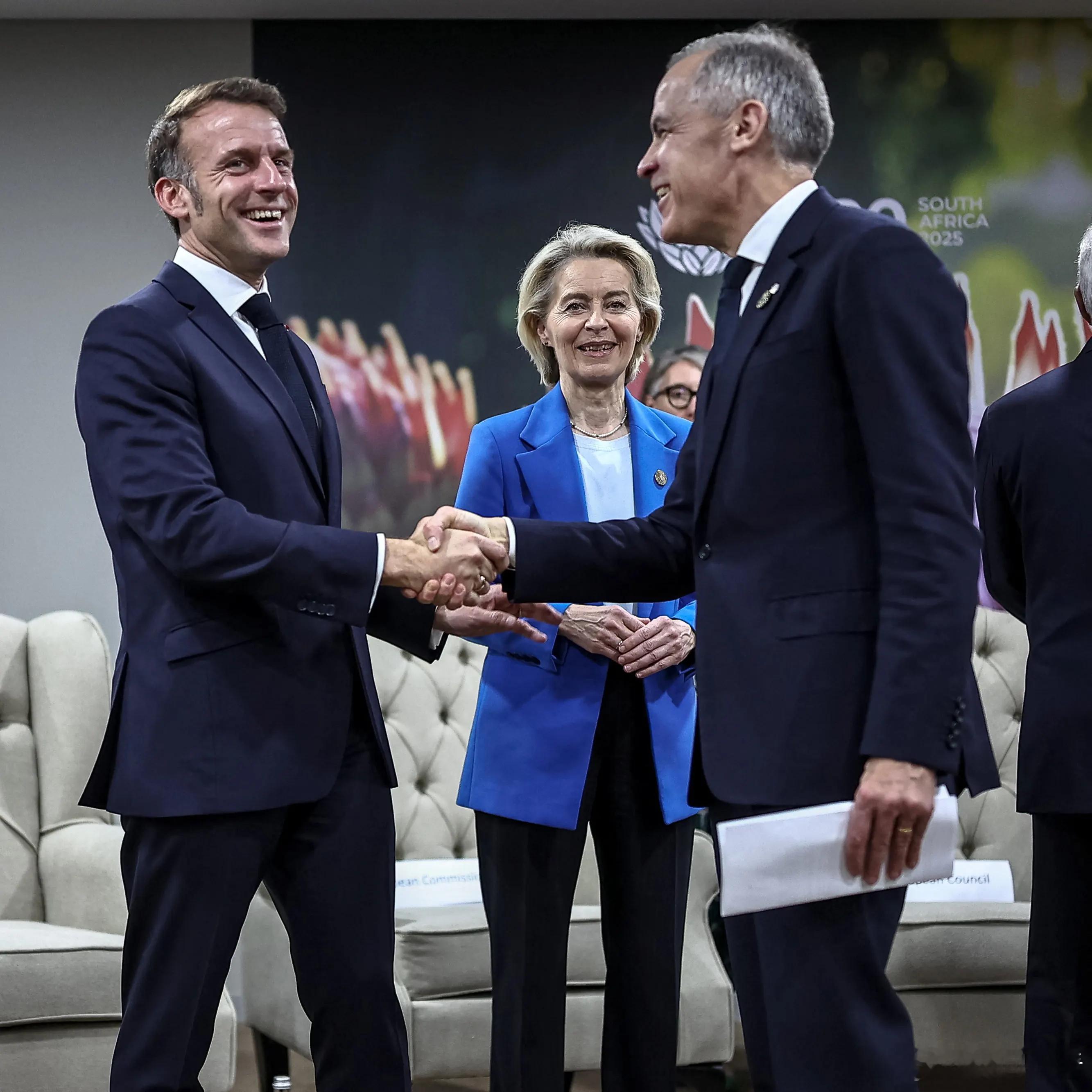 2025年11月22日,法国总统埃马纽埃尔·马克龙、欧盟委员会主席乌尔苏拉·冯德莱恩、欧洲理事会主席安东尼奥·科斯塔、英国首相基尔·施塔默、德国总理弗里德里希·默茨和日本首相高市早苗出席在南非约翰内斯堡纳斯雷克展览中心举行的G20领导人峰会期间的G7++会议。照片有些暧昧了高市早苗在图10