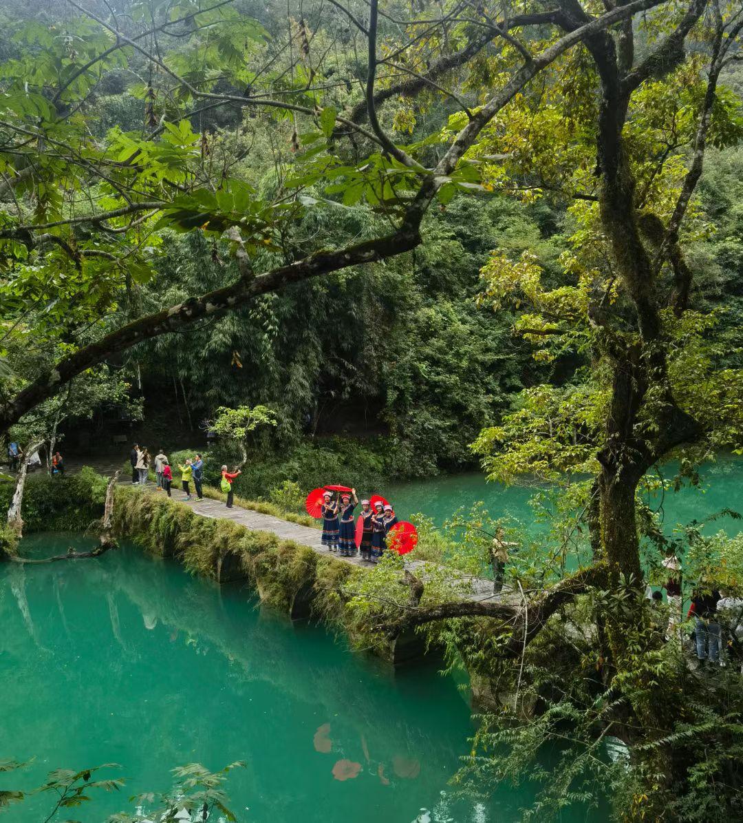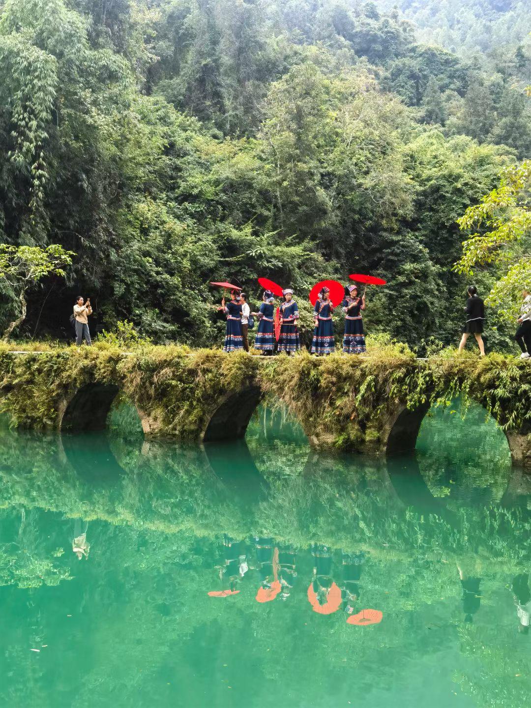 青苔裹着石桥浸在碧水里,红伞与蓝衣落在波光里,连枝头的柿果都坠着山乡的晴意——这趟相遇,是自然与烟火揉碎的温柔。风景都在岁月里 似在画中的风景 最诗意的风景 藏在雾里的风景