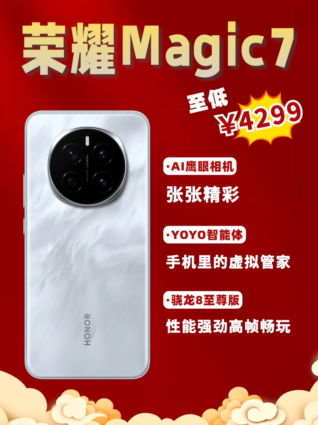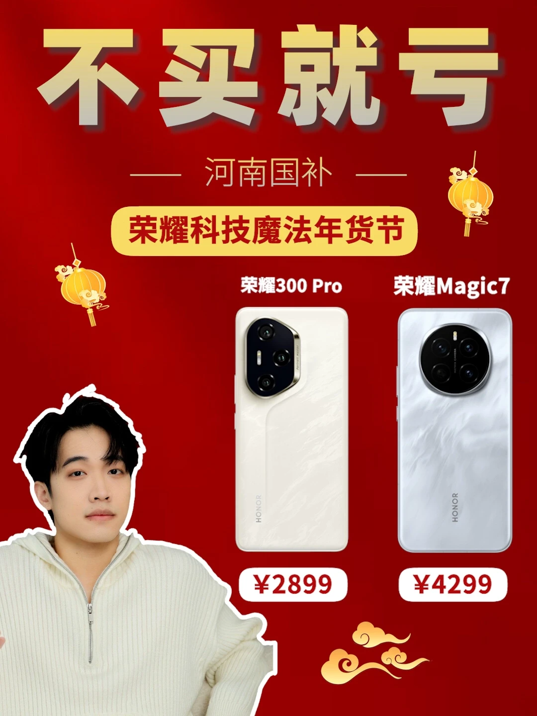 🔶荣耀 Magic7 系列,直接优惠 500 元,部分版本还能再领 200 元新春福利,算下来能省 700 块,太划算了