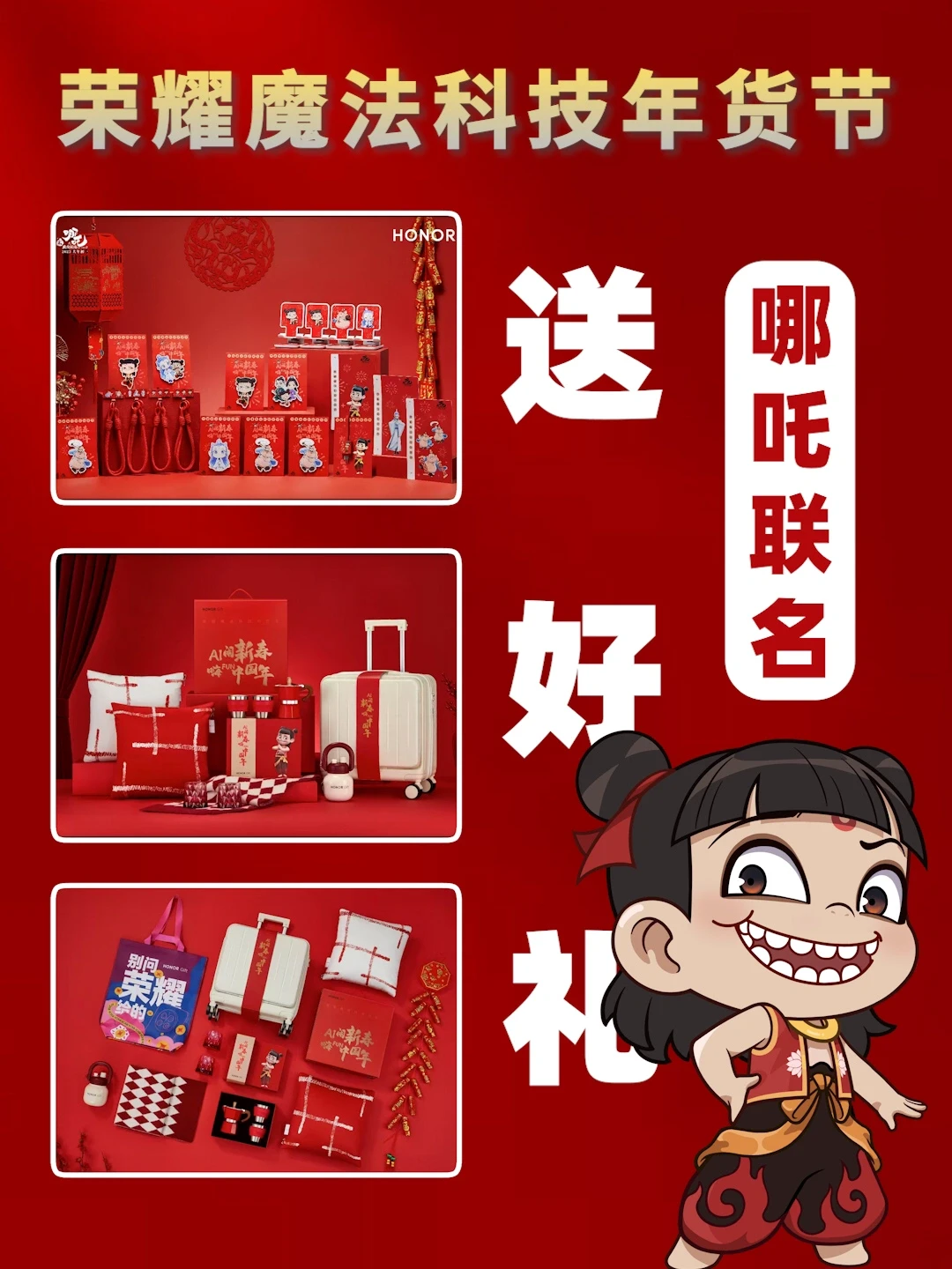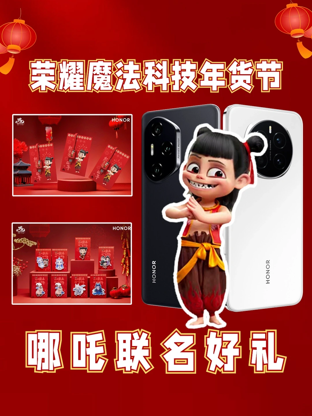 这次荣耀年货节➕哪吒 IP 联名了,线下买手机,不仅能享受国补和年货节的优惠,还能拿到联名的礼物,真的太值了❗