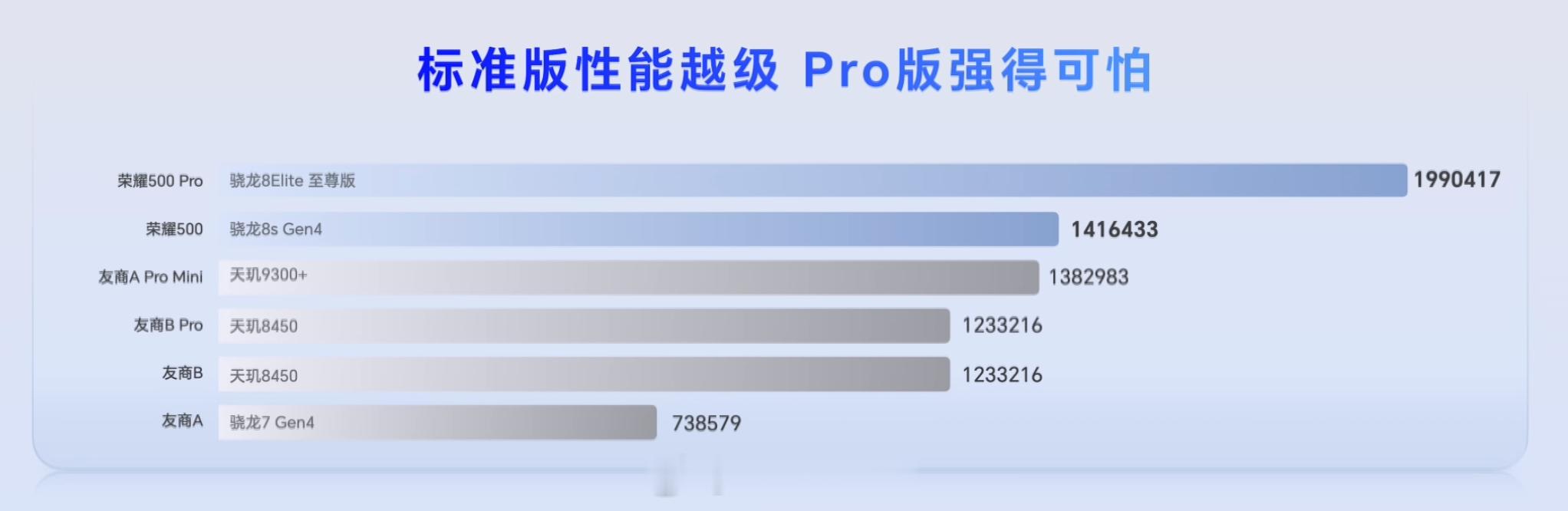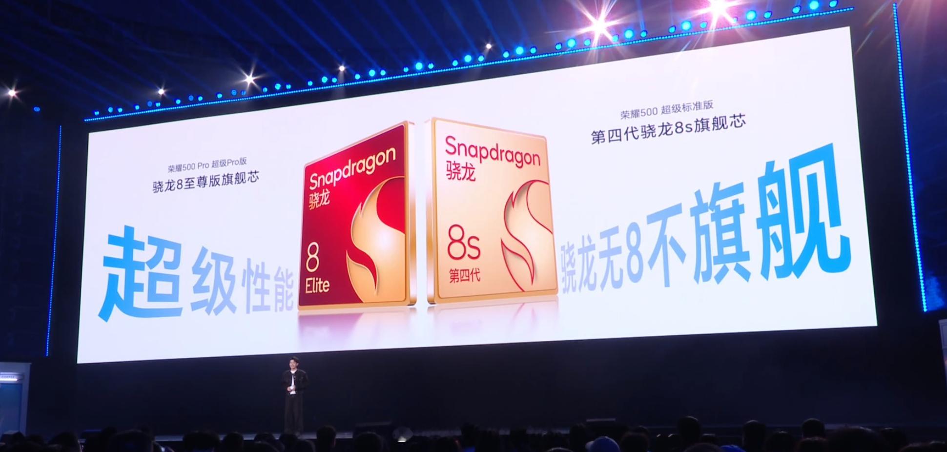 荣耀 500 骁龙 8s Gen4,Pro 则是骁龙 8 Elite,还有幻影引擎 3.0