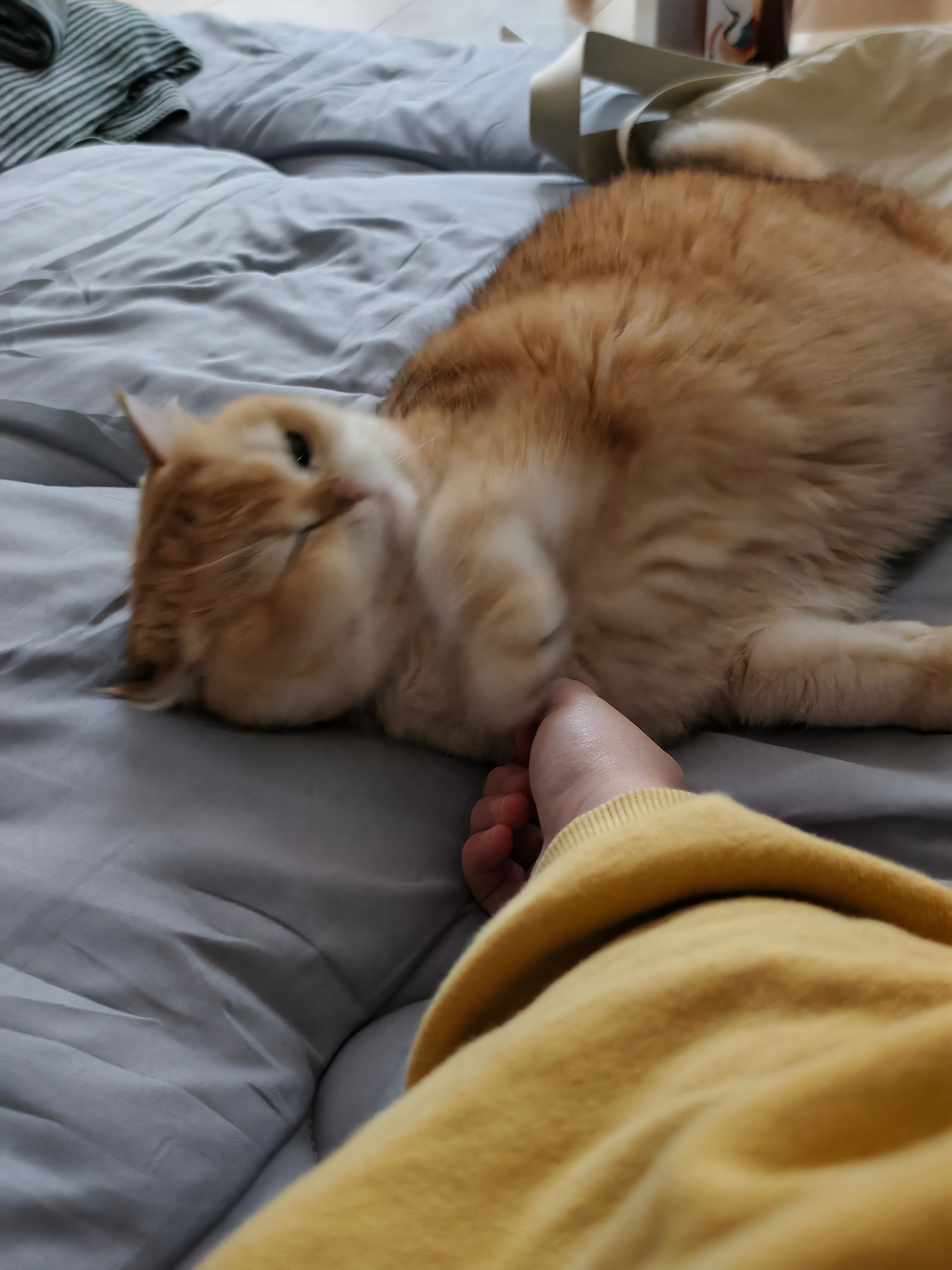 陪孩子玩地毯,聪明的小菇直接从源头捕猎我的手,直接嗷呜一口只有傻猫才能玩好久。
