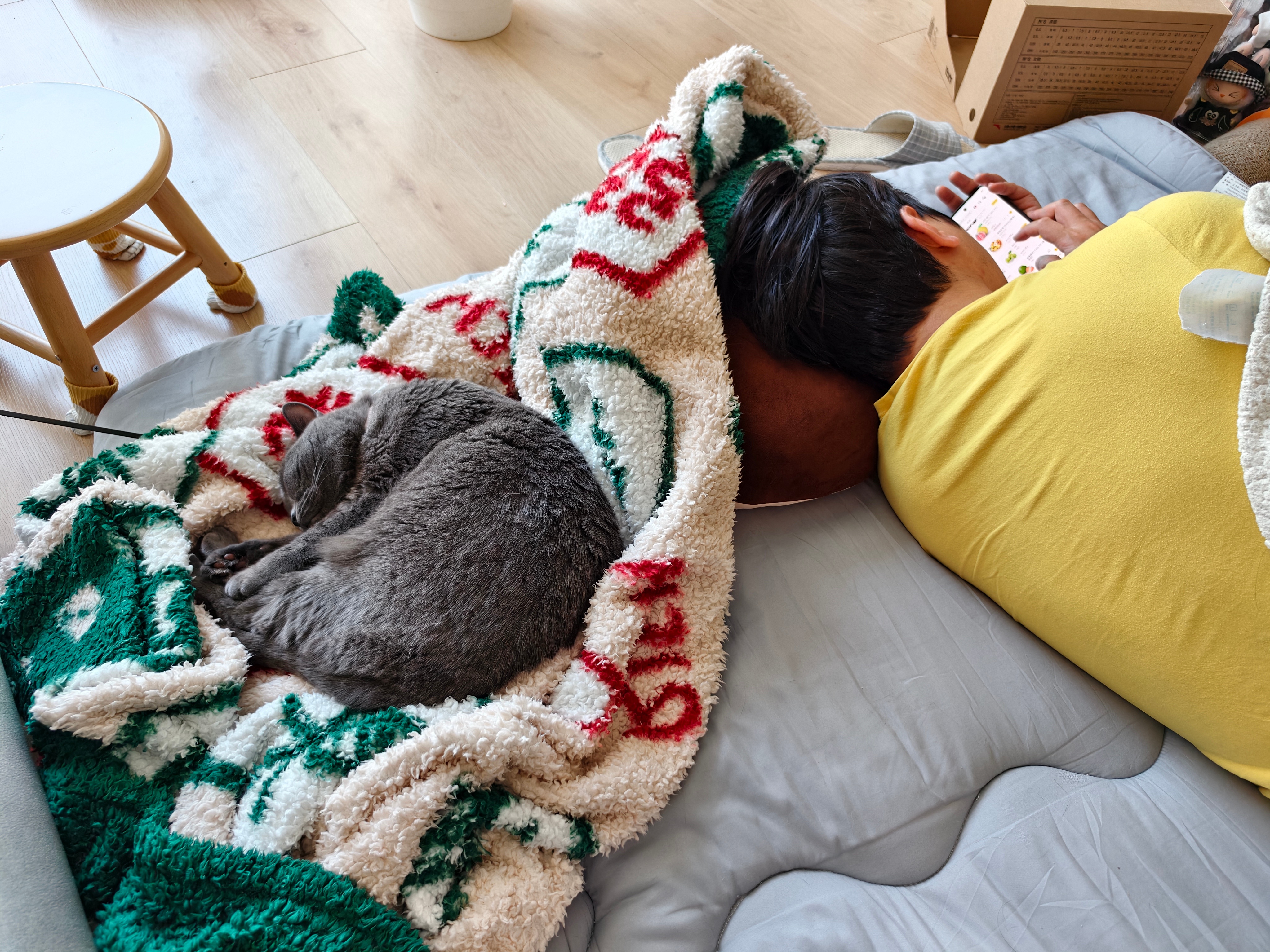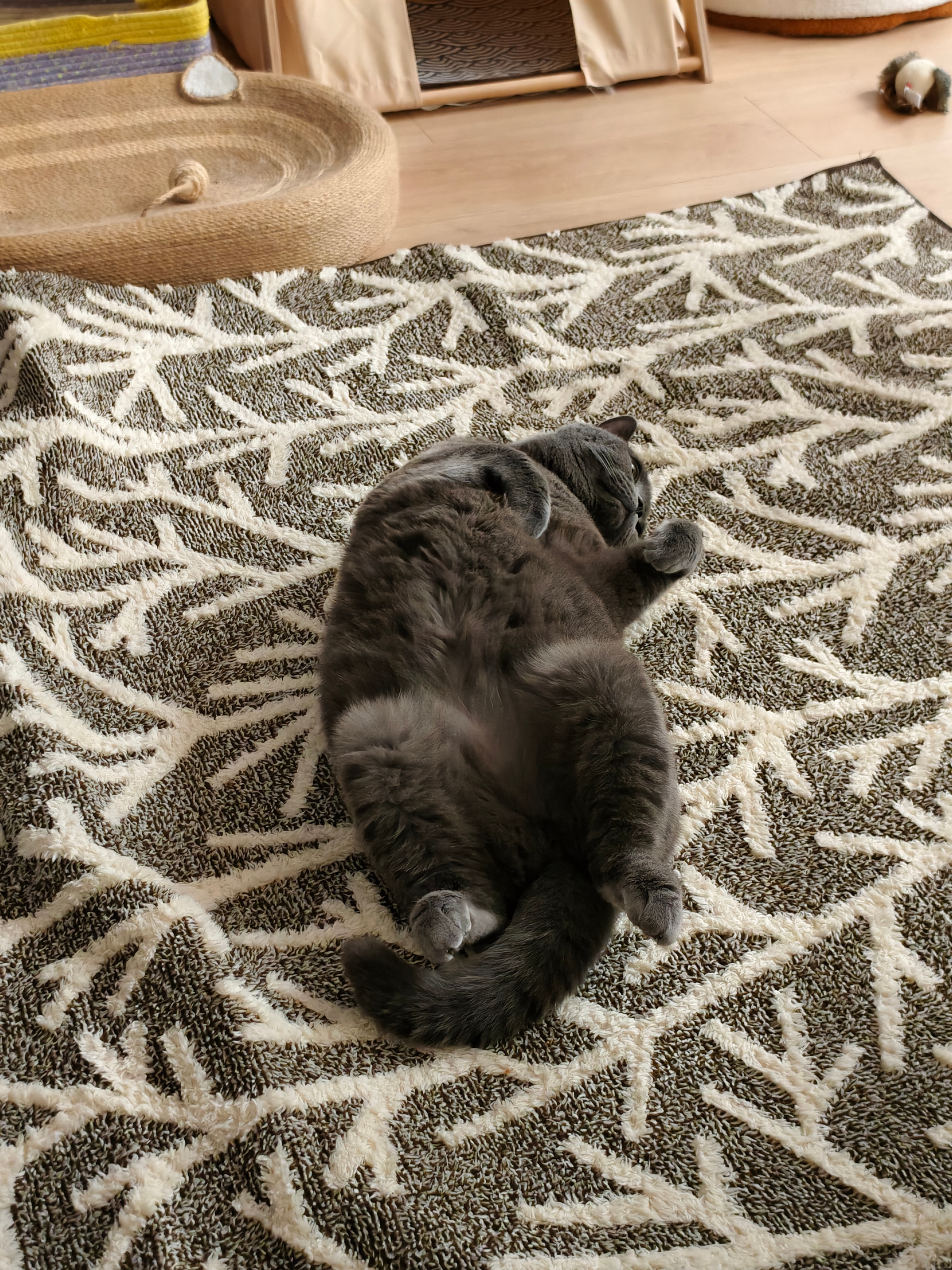 广西又在冬天和夏天之间反复横跳了,给小猫铺上了地毯,得到了两份好评
