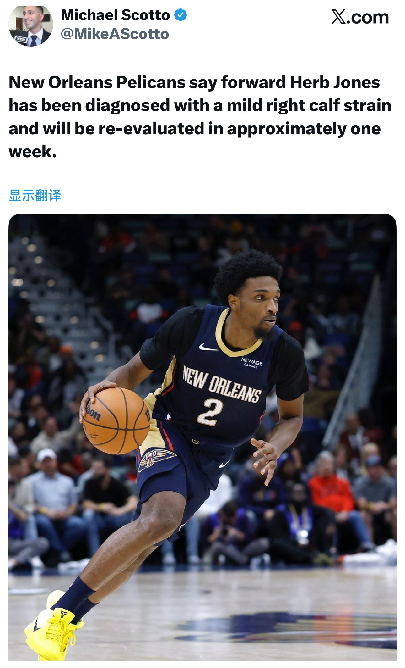 鹈鹕前锋赫伯琼斯右小腿轻度拉伤,一周后复查。本赛季场均9.5分3.8篮板2.3助攻1.4抢断,投篮命中率39%,三分命中率36.2%。本赛季合同1390万,下赛季1490万。