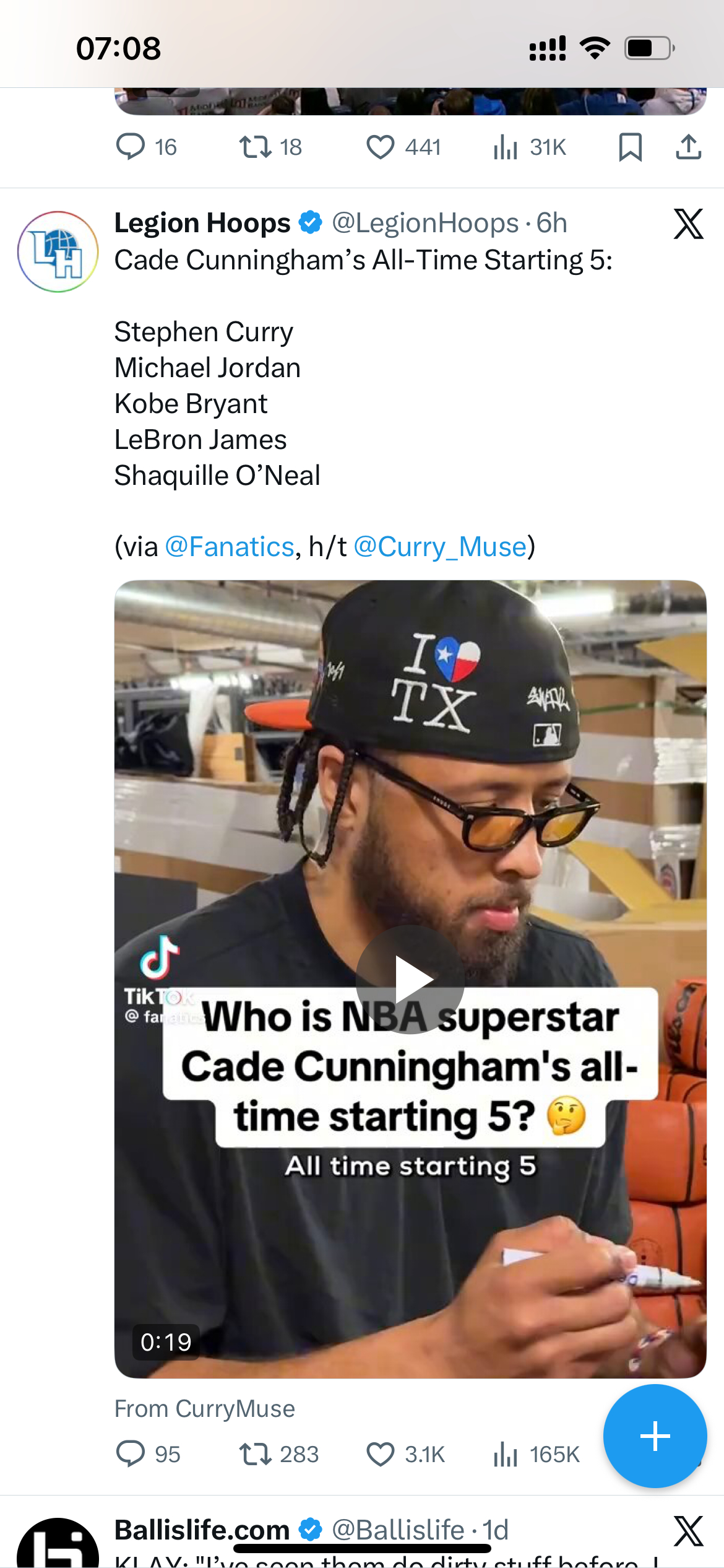 凯德·坎宁安(Cade Cunningham)的历史最佳首发五人:• 斯蒂芬·库里 (Stephen Curry)• 迈克尔·乔丹 (Michael Jordan)• 科比·布莱恩特 (Kobe Bryant)• 勒布朗·詹姆斯 (LeBron James)• 沙奎尔·奥尼尔 (Shaquille O’Neal)