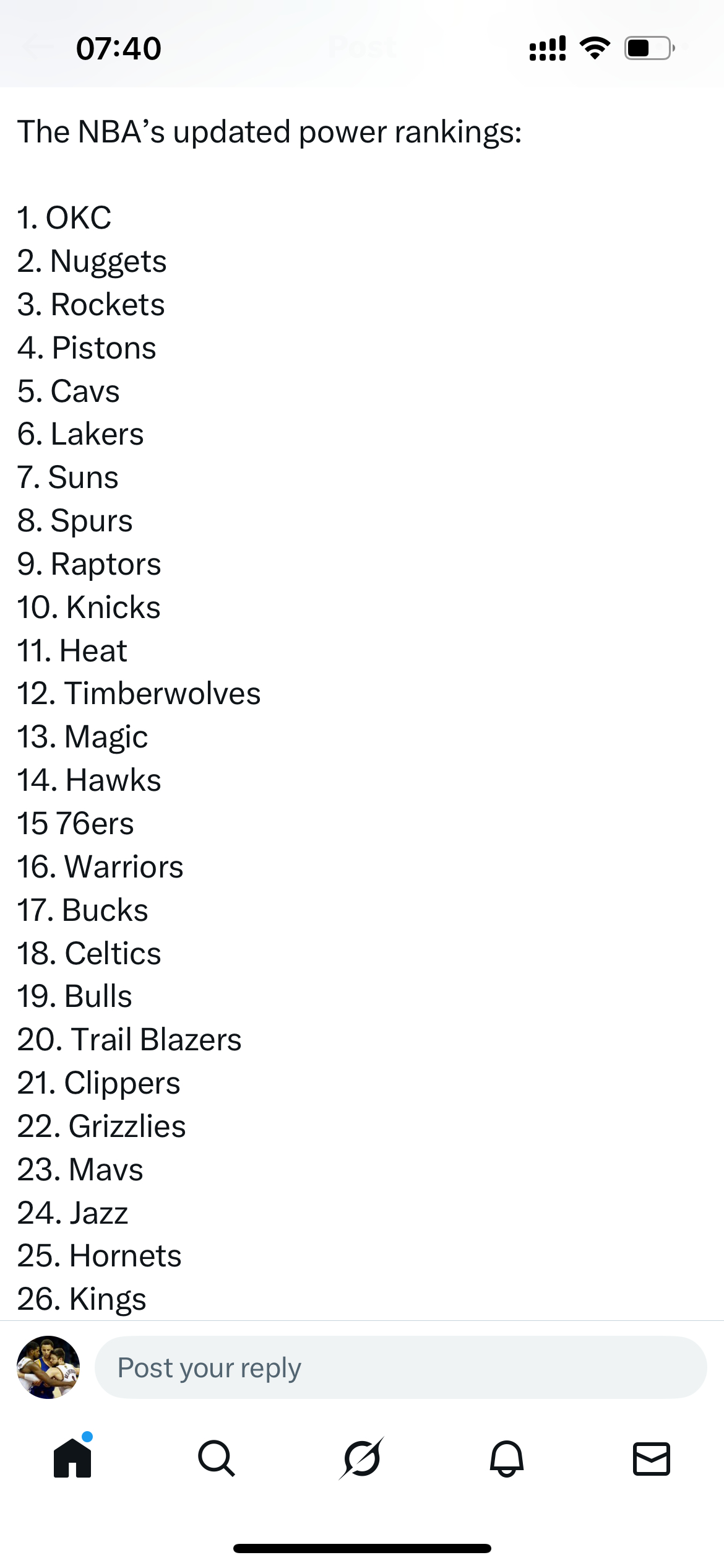 NBA最新实力榜,勇士第16名