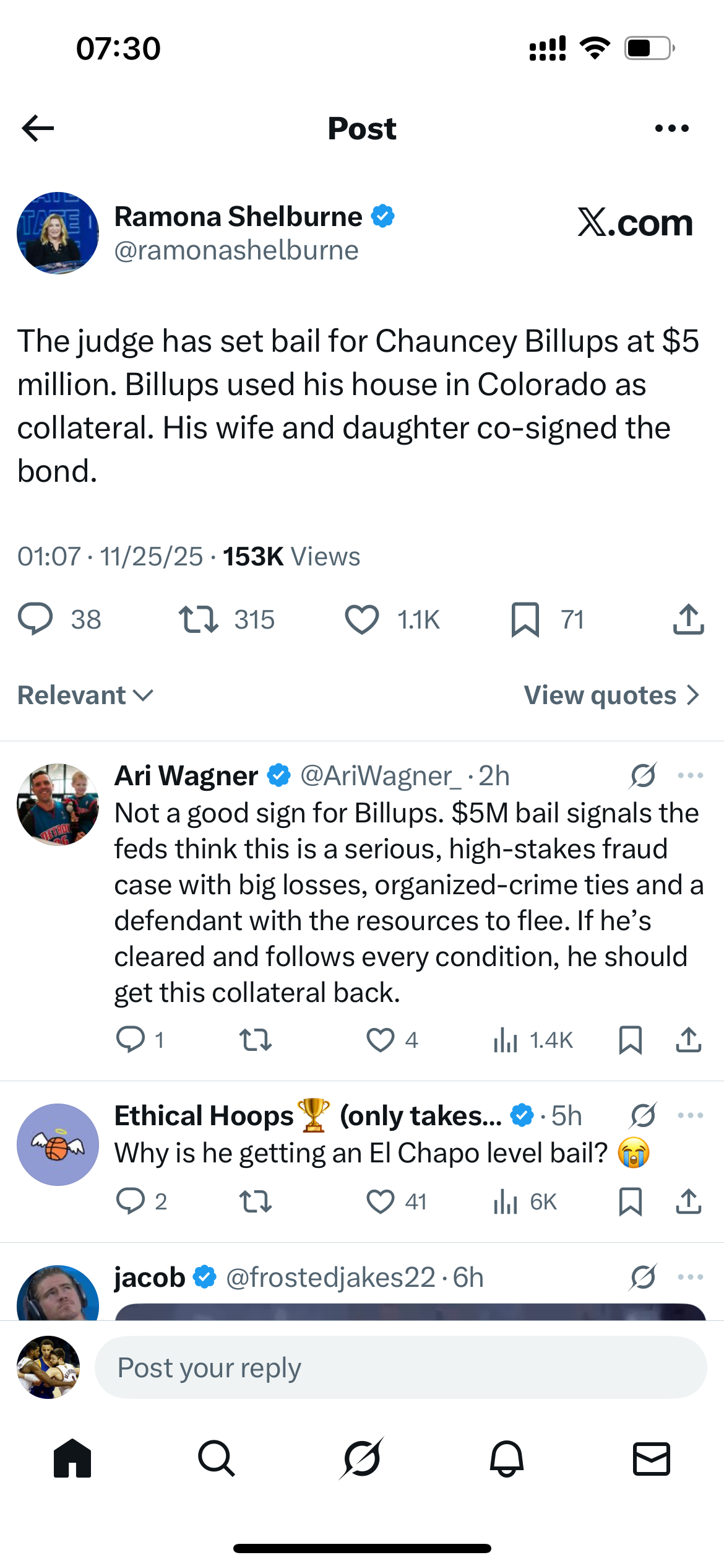 法官将昌西·比卢普斯的保释金定为 500 万美元。比卢普斯用他在科罗拉多州的房产作为抵押品,他的妻子和女儿共同签署了保释文件。