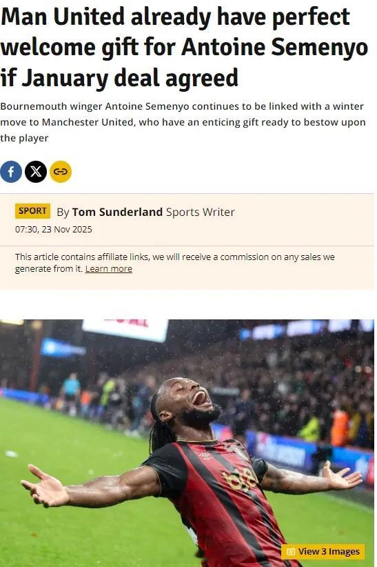 曼市晚报消息,很有兴趣收购塞梅约,并且他们能为这名25岁的球星提供他喜欢的24号球衣。不过根据TA的说法,和才是目前领先塞梅约争夺战的球队,这名边锋合同中价值6500万英镑的违约金条款一月份就将生效。