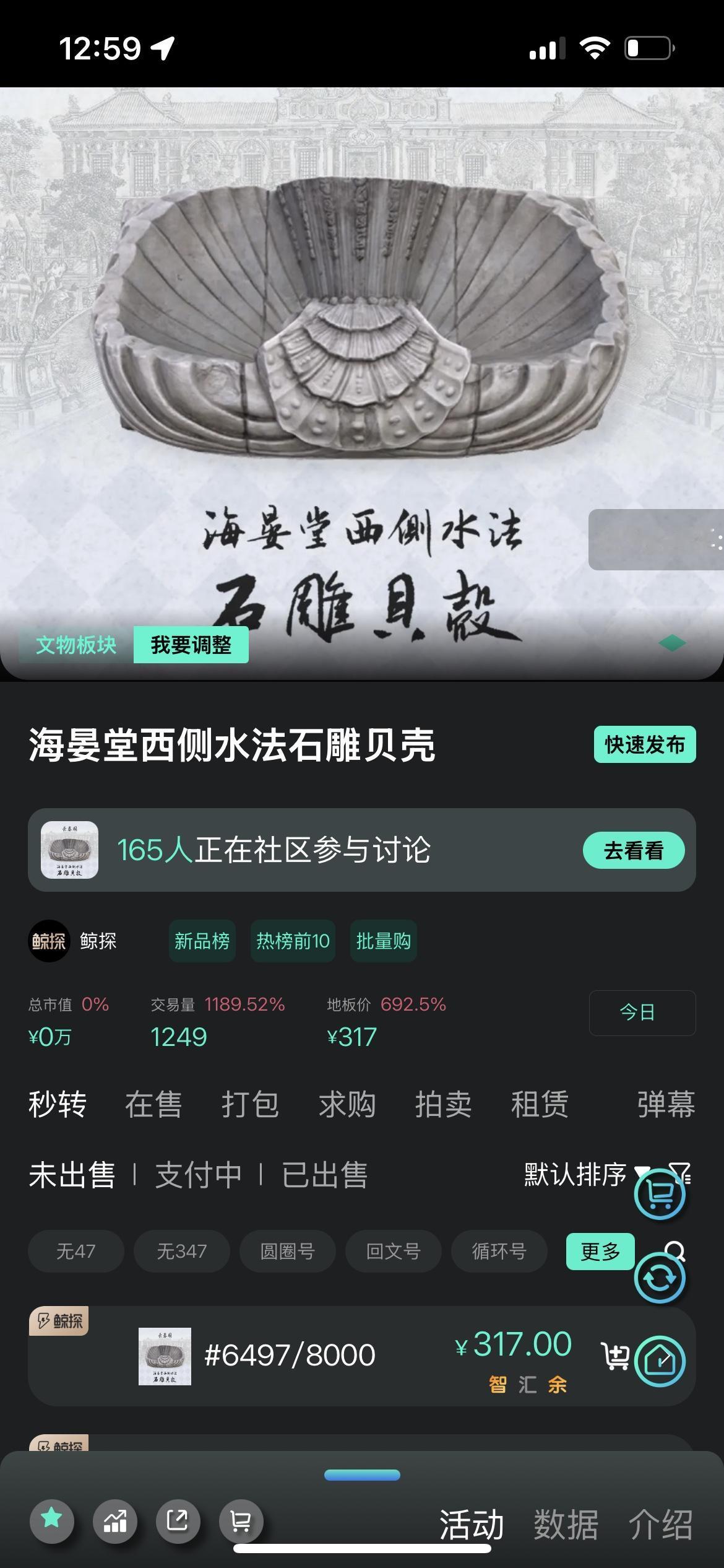 鲸探今日发行海晏堂石雕贝壳 数字藏品引爆市场溢价7倍。 今日,鲸探平台重磅发行“海晏堂西侧水法石雕贝壳”数字藏品,发售价为40元。该藏品一经推出便在二级市场引发热烈追捧,溢价高达280元以上,较发行价暴涨7倍,再次印证了顶尖文化遗产在数字领域的巨大市场潜力。 这款数字藏品所承载的历史与文化价值,远非其发行价所能衡量。其原型源自被誉为“万园之园”的圆明园中的海晏堂。海晏堂最负盛名的,便是由意大利传教士郎世宁等人设计的大型水力钟——十二生肖兽首水力喷泉。本次发行的“石雕贝壳”,正是位于十二生肖兽首下方、喷泉组中至关重要的装饰构件。 它并非一个孤立的装饰,而是与国宝兽首同气连枝、共同构成海晏堂建筑与水利奇观的核心部分。贝壳造型栩栩如生,纹饰精美繁复,既体现了清代皇家园林极致的奢华与艺术追求,也见证了中西文化在乾隆时期的辉煌交融。其背后的历史故事,尤其是圆明园历经的沧桑,更为其赋予了深沉厚重的情感分量。 此次市场给出的高昂溢价,清晰表明藏家们并不仅仅是追逐一个数字图像,更是竞相收藏一段凝结于“贝壳”之上的民族记忆与文化遗产。兽首的传奇色彩延伸至其配套建筑构件,激发了强烈的文化共鸣与收藏热情。这一现象充分证明,深度挖掘并活化文化遗产IP,是推动数字藏品市场健康发展的核心动力。数字藏品 鲸探藏品 鲸探数子藏品 鲸探数字资产 蛇年数字藏品