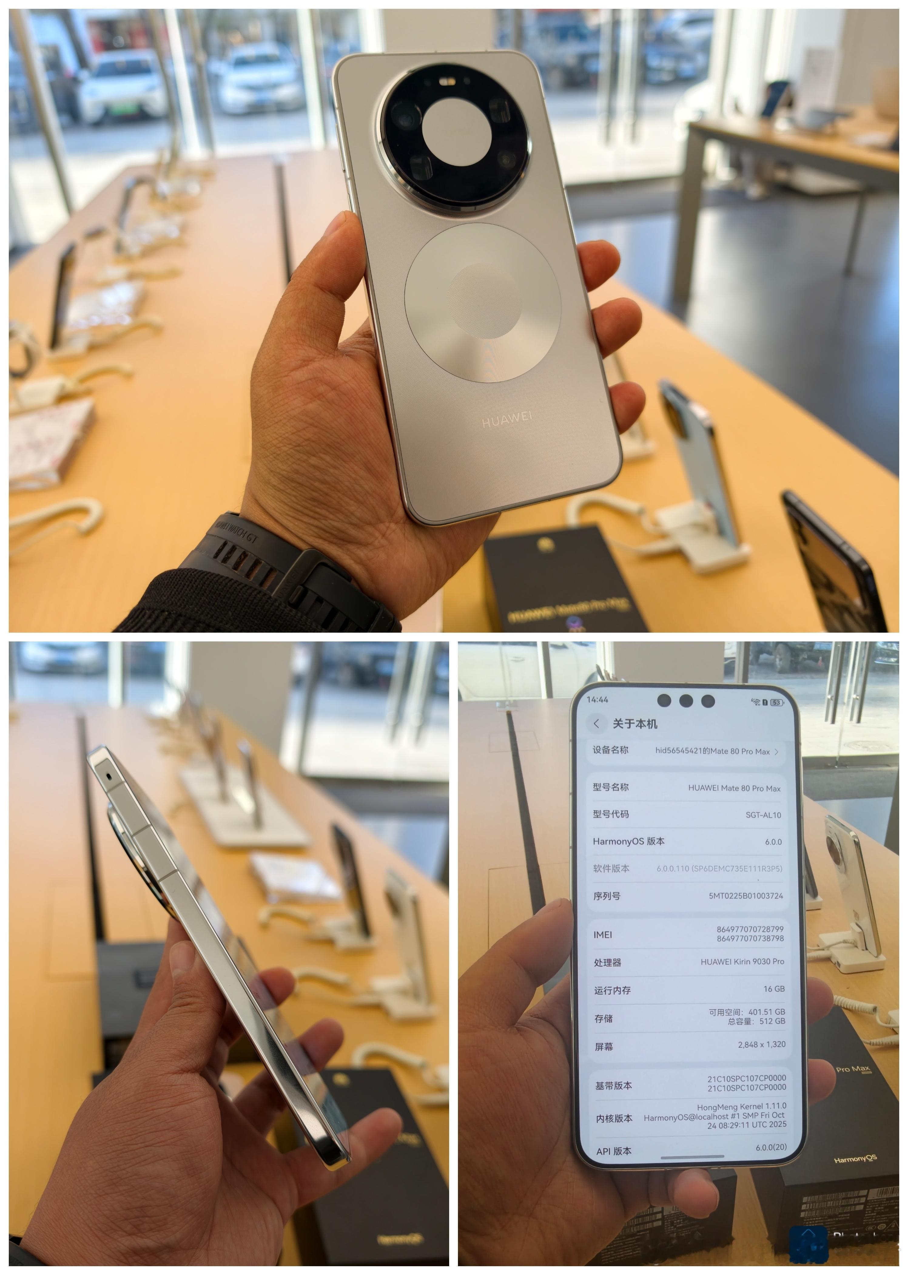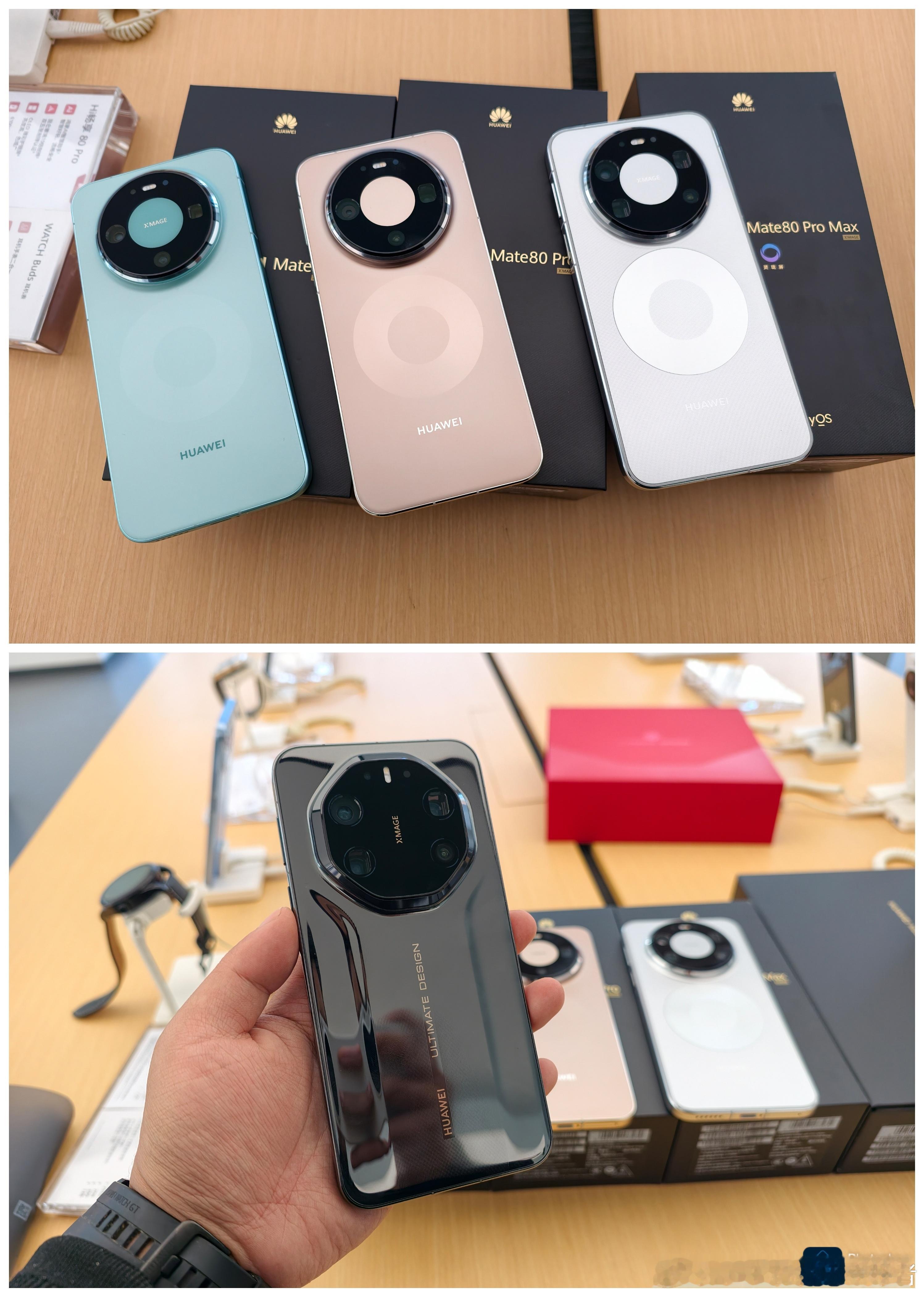 华为Mate80系列真机实拍,大家感受一下它的外观设计。华为Mate80和华为Mate80 Pro采用锦纤后壳,只不过标准版是哑光金属中框,Pro版是高亮面金属中框。从我个人的感受来说,我更喜欢Pro系列的亮面金属中框材质,摸上去和看上去也更好。华为Mate80 Pro Max是全金属机身设计,质感还是很棒的,也是我认为整个系列最值得购买的一款。颜值比图片好看,用料也更好,比Rs便宜很多但配置差不多,所以它的产品力很强。华为Mate80Rs,不在乎价格的话可以冲,外观辨识度很高,挺适合老板们使用的。