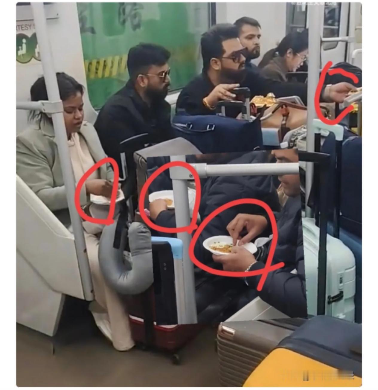 上海地铁内, 一群印度人吃手抓饭! 还互相分享,咋回事,地铁上不让吃东西这个规定现在对内不对外? 官方早有明确规定,《上海市轨道交通乘客守则》里写得明明白白,车厢内严禁饮食,不管哪国人都得守。 之前有男子在地铁吐鱼骨,就被罚款50元,这次事发2号线,地铁也说已关注并核查。 而且去年测评显示,4成多乘客都遇到过不文明乘车行为,大家对文明宣传满意度还在下降。 公共空间的规矩哪能分内外,部分乘客在地铁饮食确实不合适,希望不管是谁,都能遵守乘车规则,也希望规则能落到实处,守护共同的乘车环境。 各位读者你们怎么看?欢迎在评论区讨论。