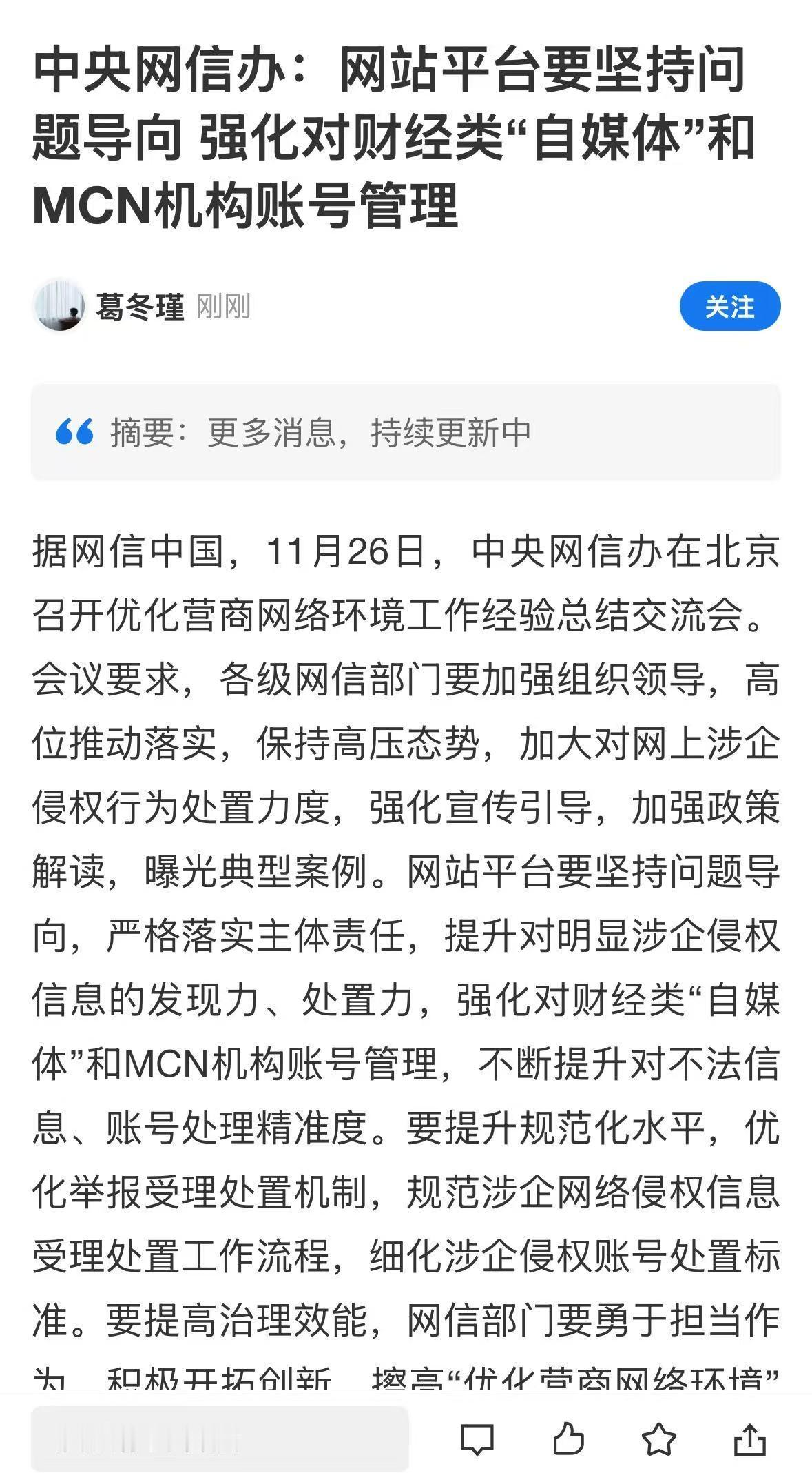 财经类自媒体又被点名了?那财经类媒体呢?比如第一……?