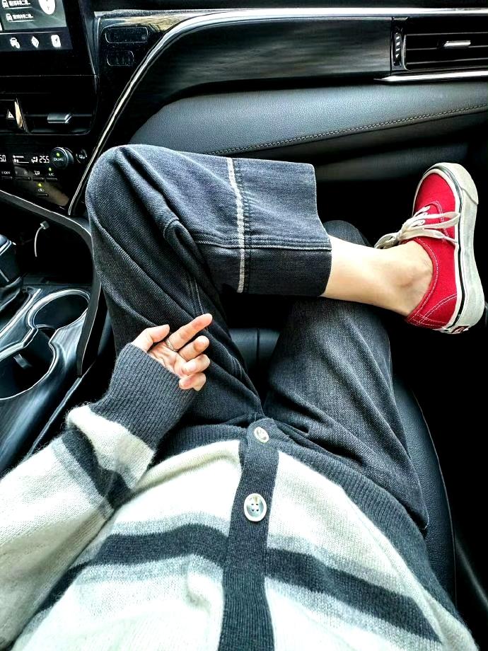 想要轻松随性的日常街头穿搭灵感?这就来分享。 像藏青上衣配破洞阔腿裤,就是慵懒松