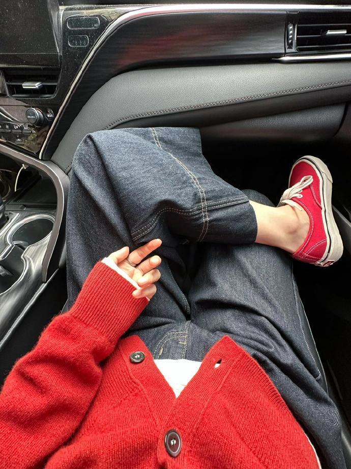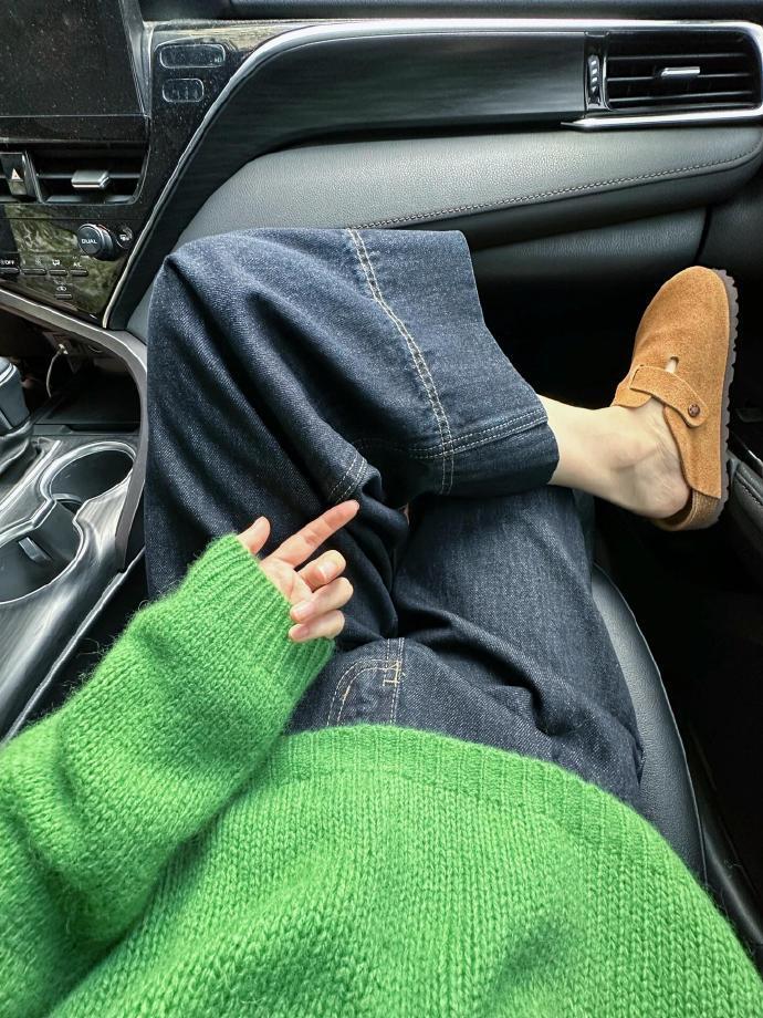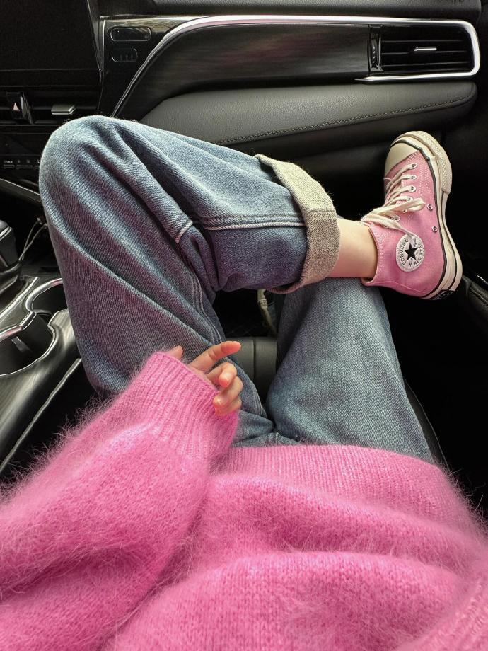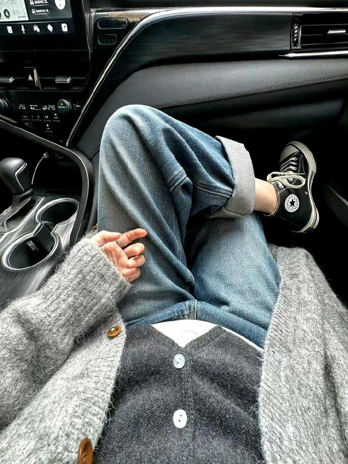休闲穿搭指南:牛仔裤+橙色运动鞋+毛衣,轻松自在!👟👖🧥