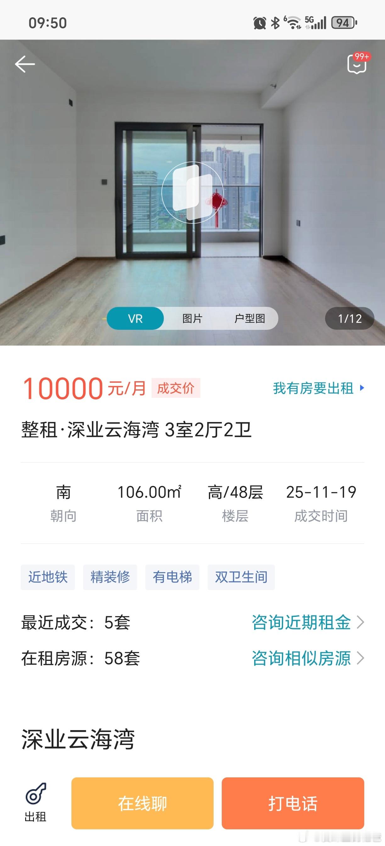一千多万的房子,租金10000左右。这就是深圳,租房都是爷,爽!