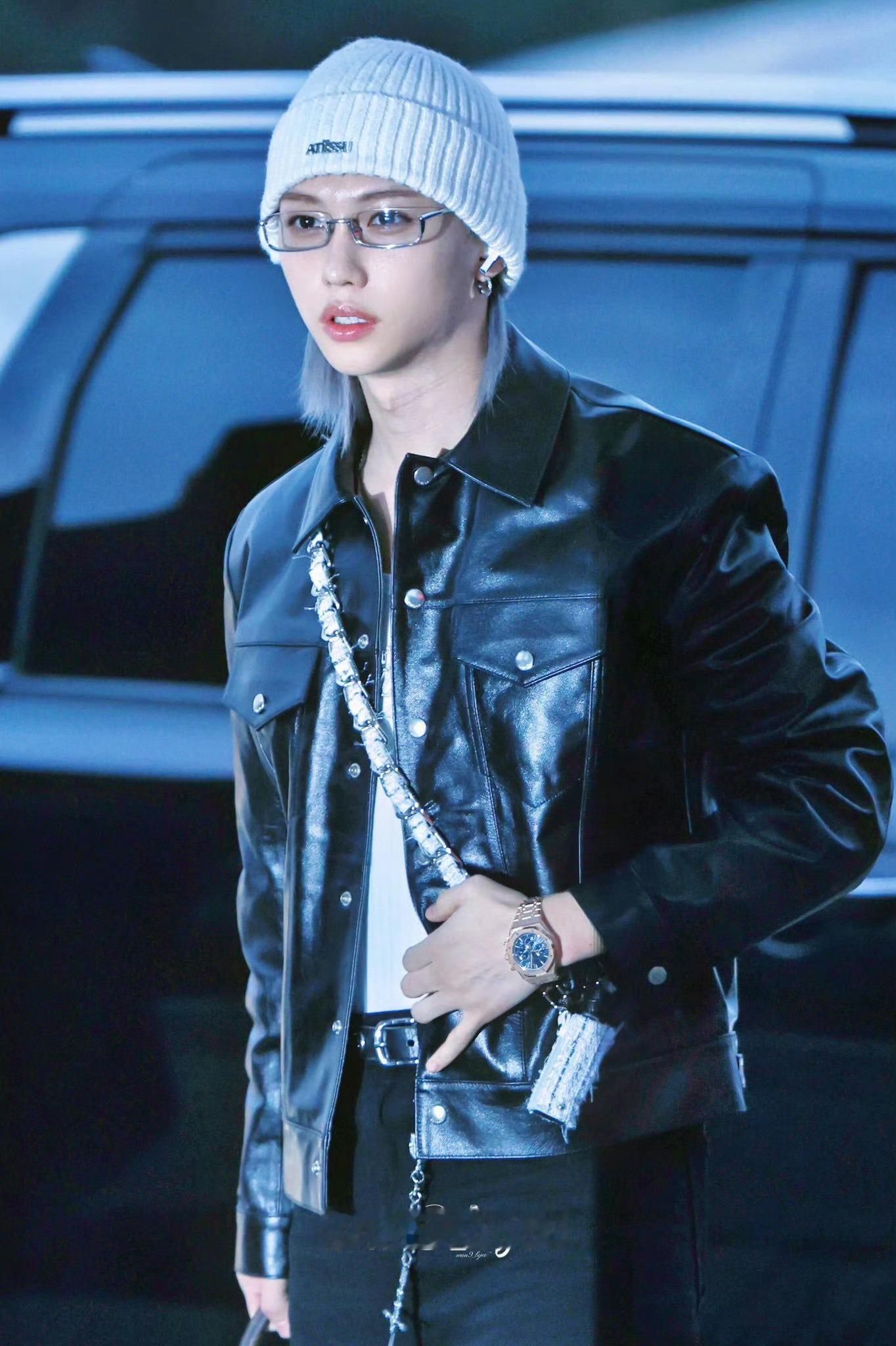 李龙馥冷帽银发皮衣look 李龙馥今日份机场路透出发MAMA,冷帽银发+皮衣look时尚max!期待新舞台李龙馥出发MAMA