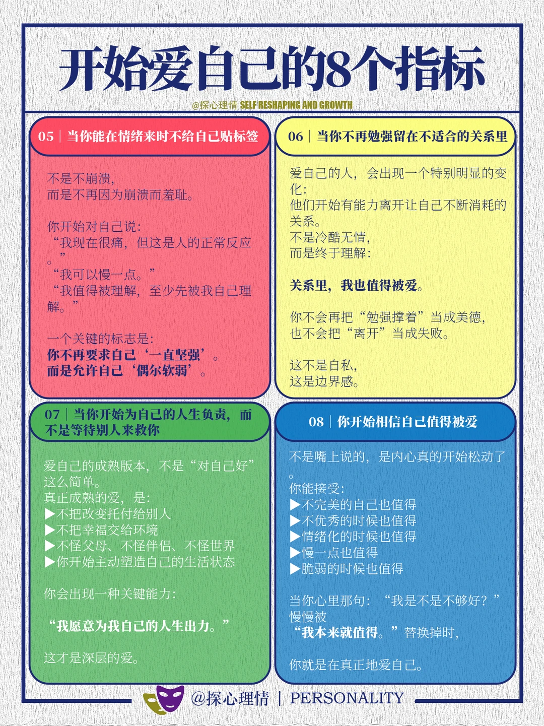 我在聊心理 学点儿心理学 个人性格探索 了解你自己 学习爱自己 爱自己的表现 爱自己行动 如何爱自己