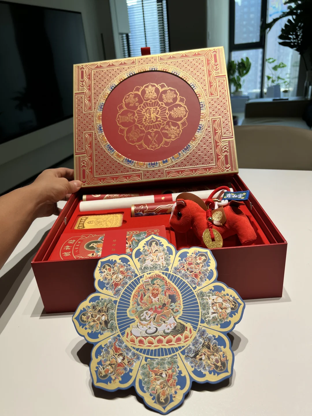 3. 春联+福字:不是普通红纸,带唐卡纹样,比外面买的精致,准备过年贴门口。