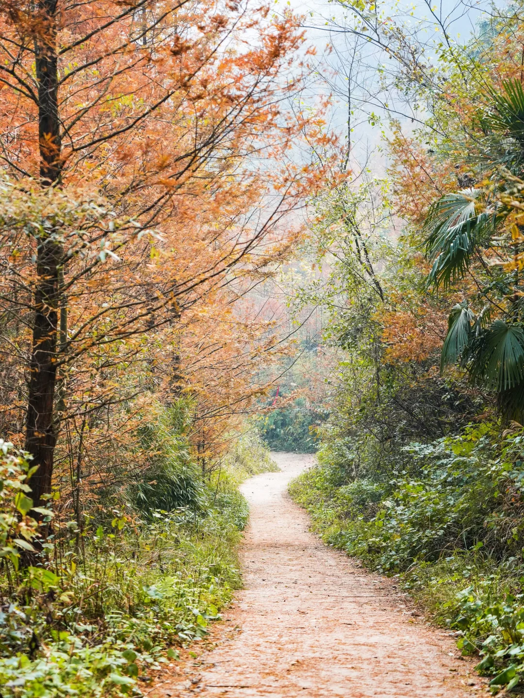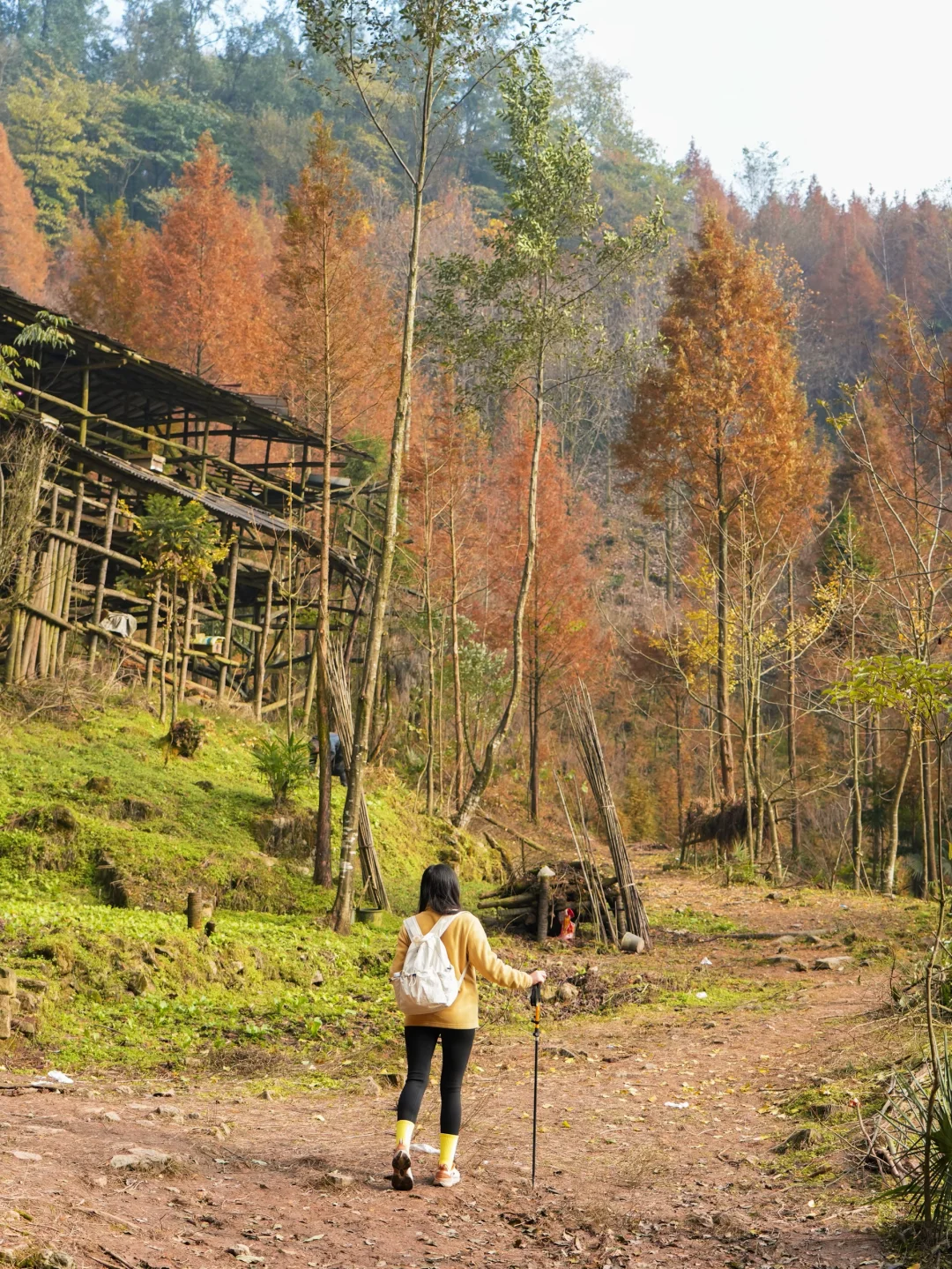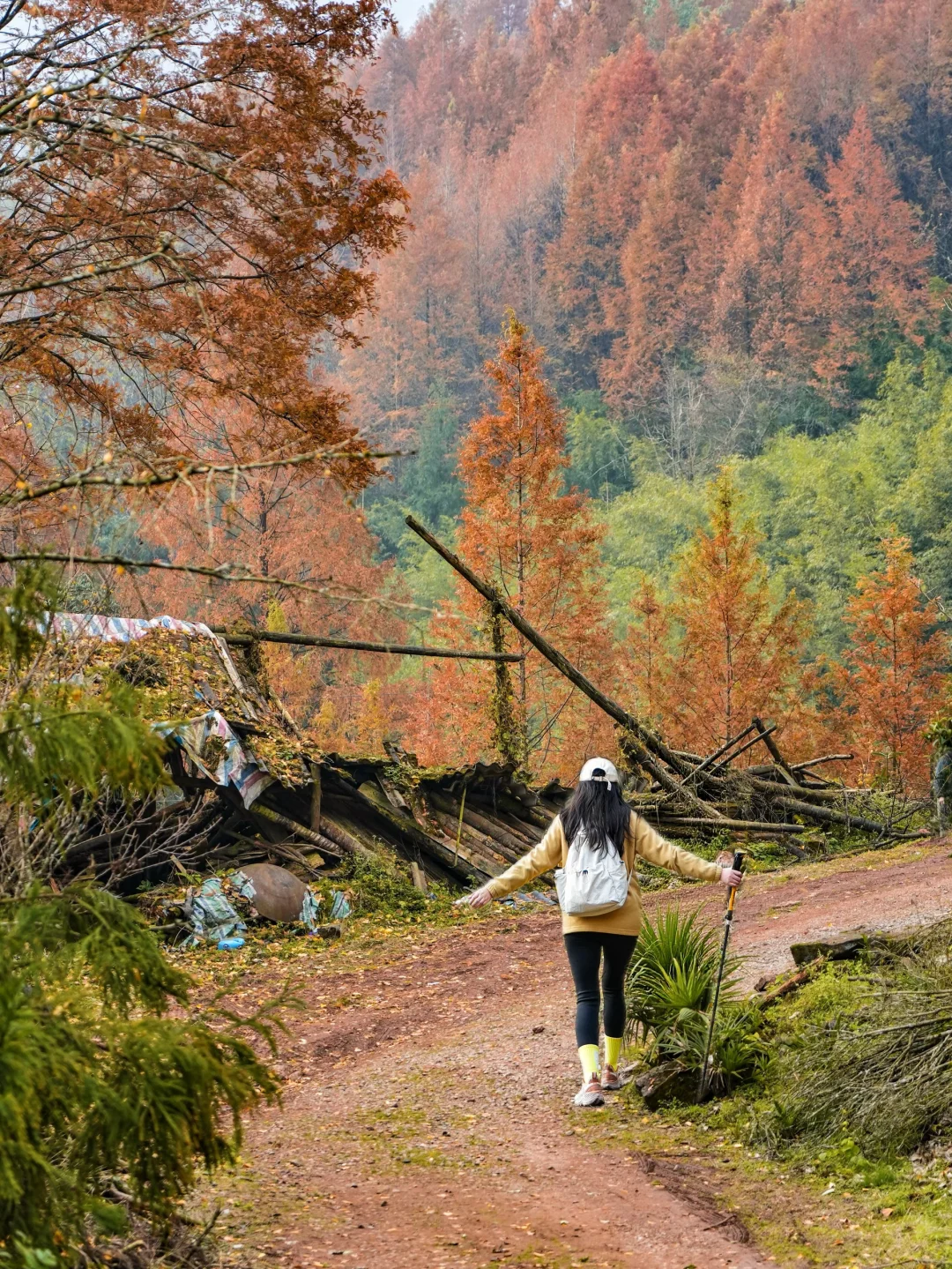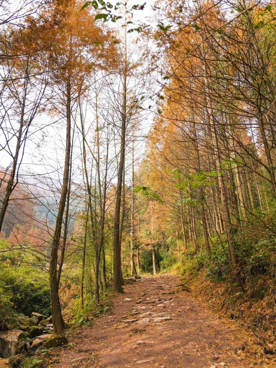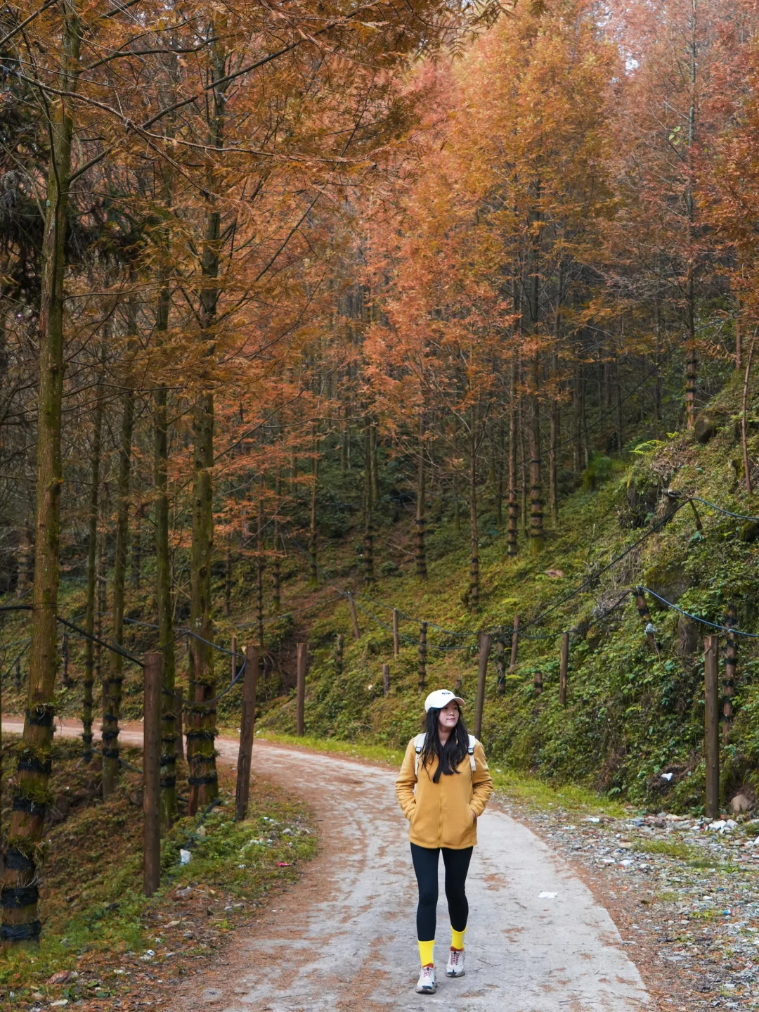 1️⃣轻松散步路线:如果只是想散散步,看看彩林,就只需要走水泥路,可以把车停到车敞坪,沿着公路往前走2公左右,再原路返回🔙即可