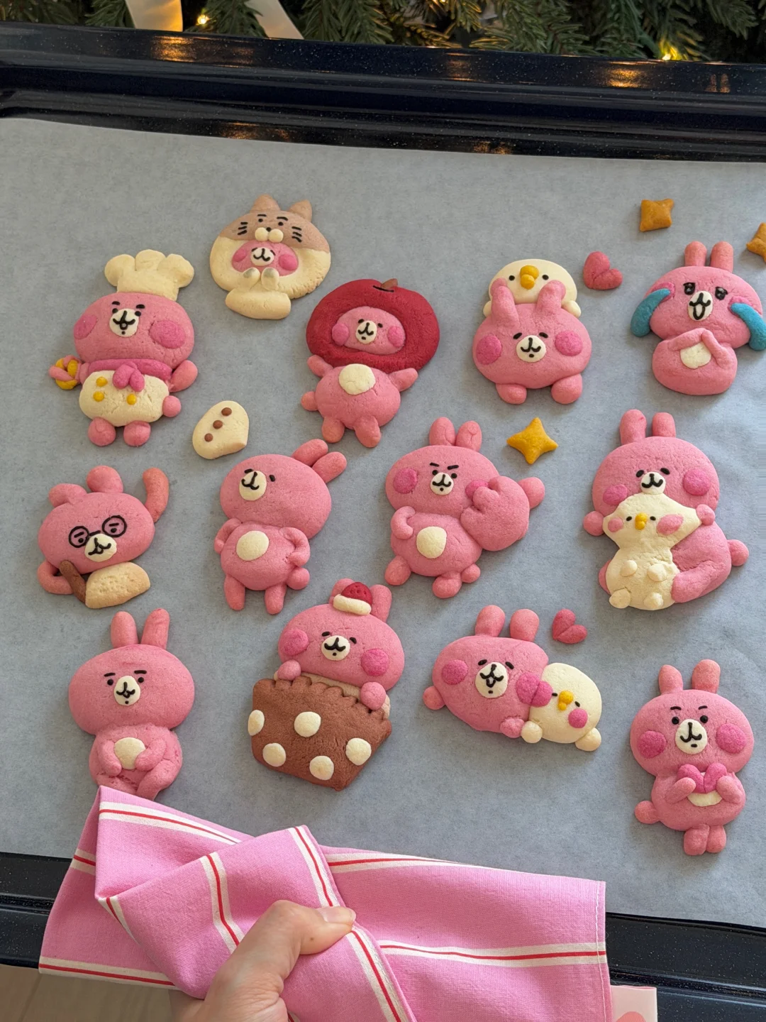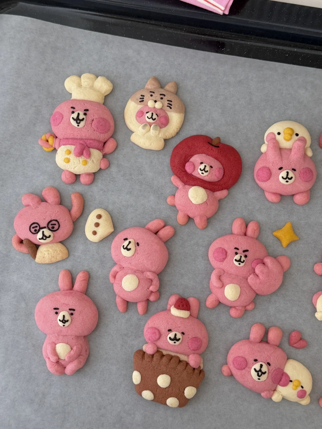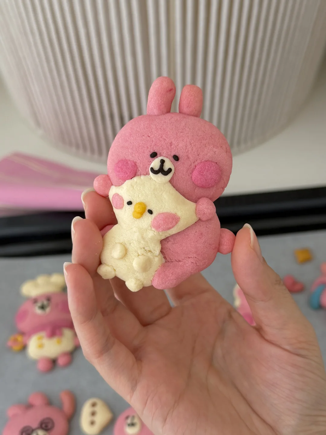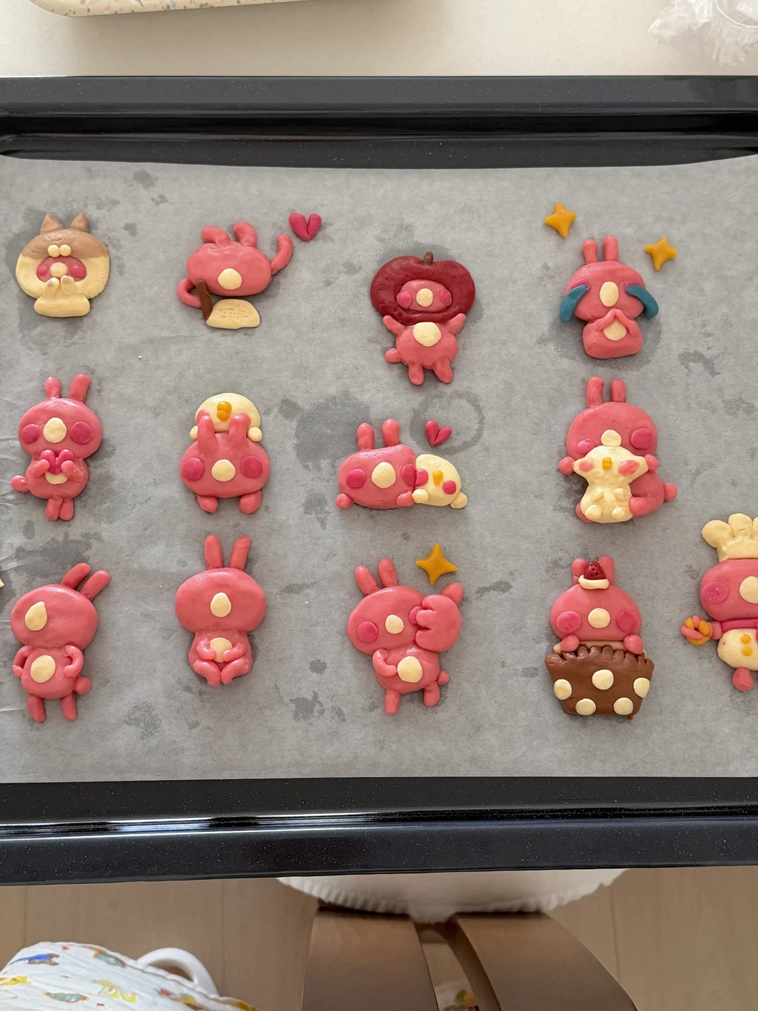 6️⃣烤箱预热,150°烤18分钟左右,烤好后晾凉。用融化的巧克力装在裱花袋里,画出五官细节