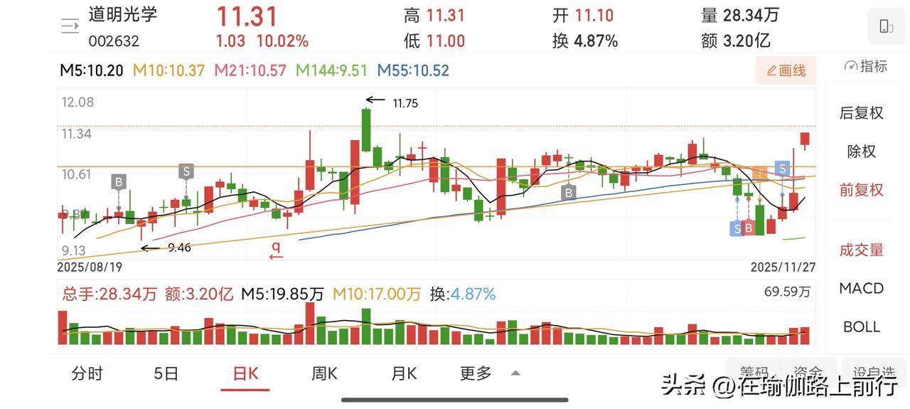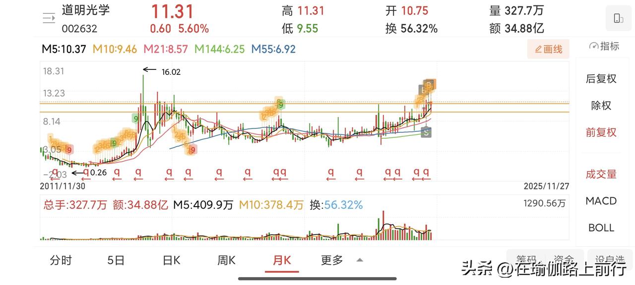 十万变百万。终于等到一个涨停,但不是我想要的。 选票选月线多头的,小量过前高。洗盘挺狠且长,月线上看只是两个长腿,周线上可是有两概-12的跌幅,正如日线上,我在前天卖了一半,原因是双阳不过阴,就想做个t,结果……