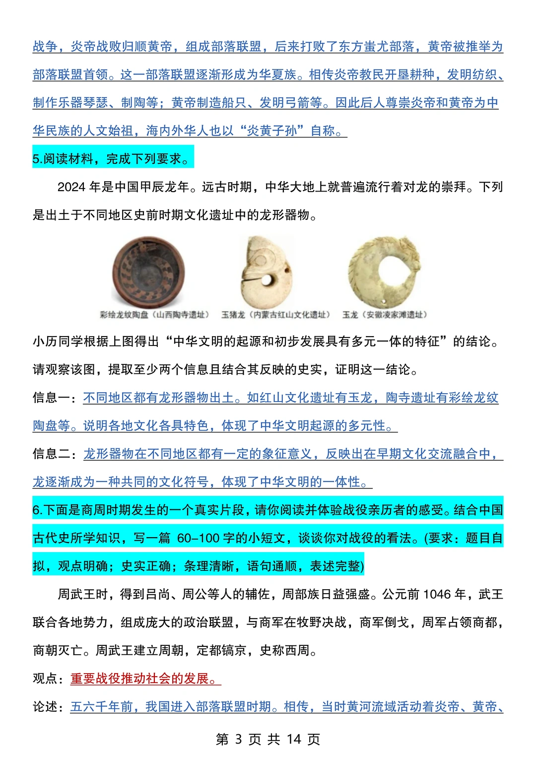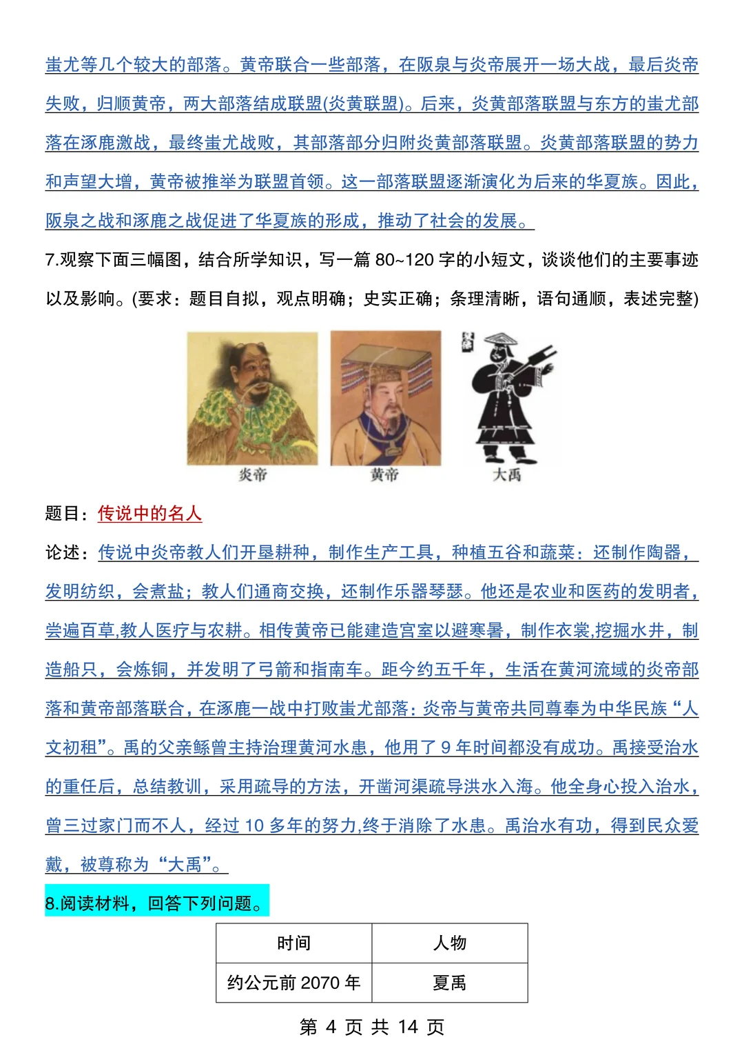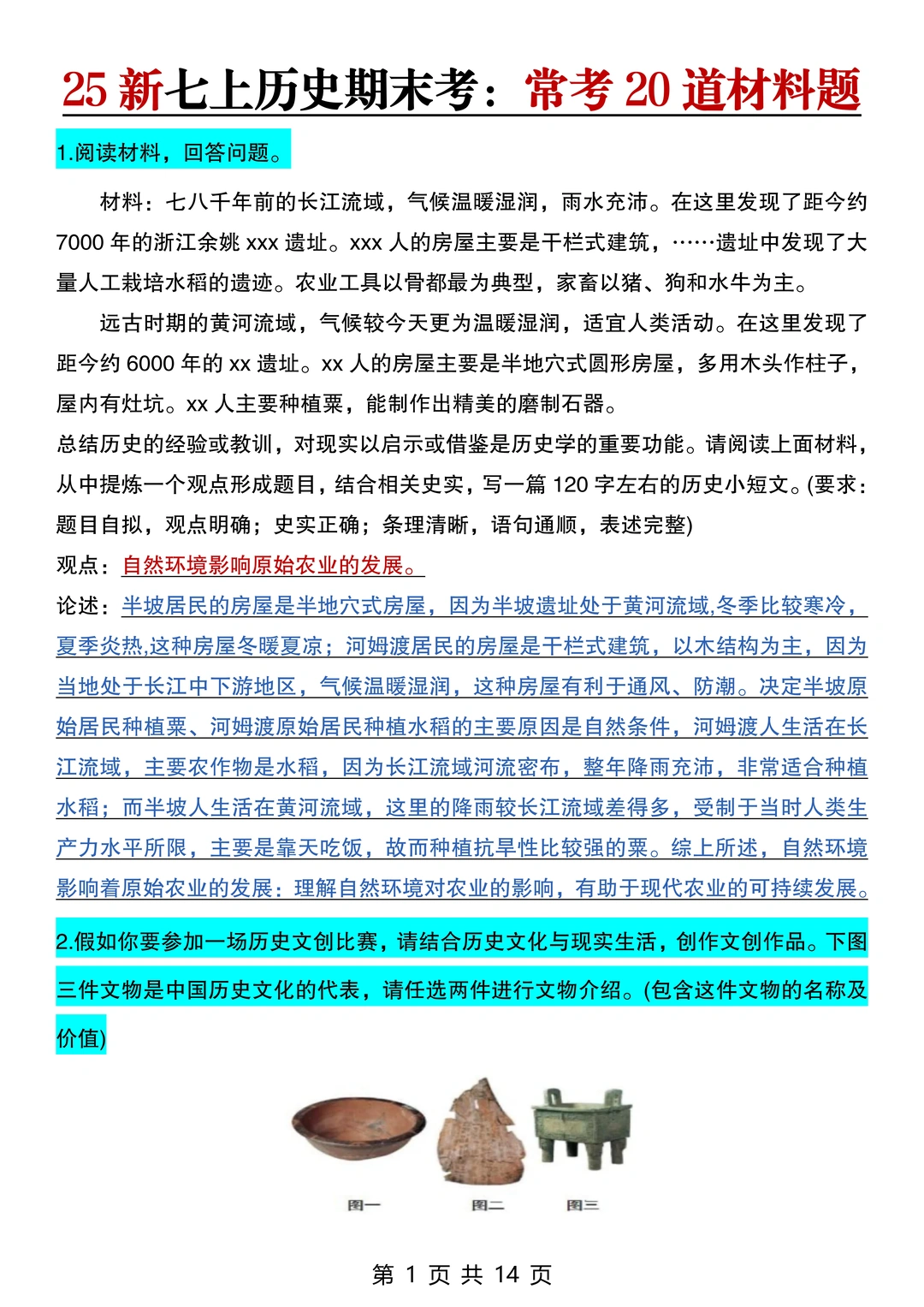 25新七上历史期末考:常考20道材料题