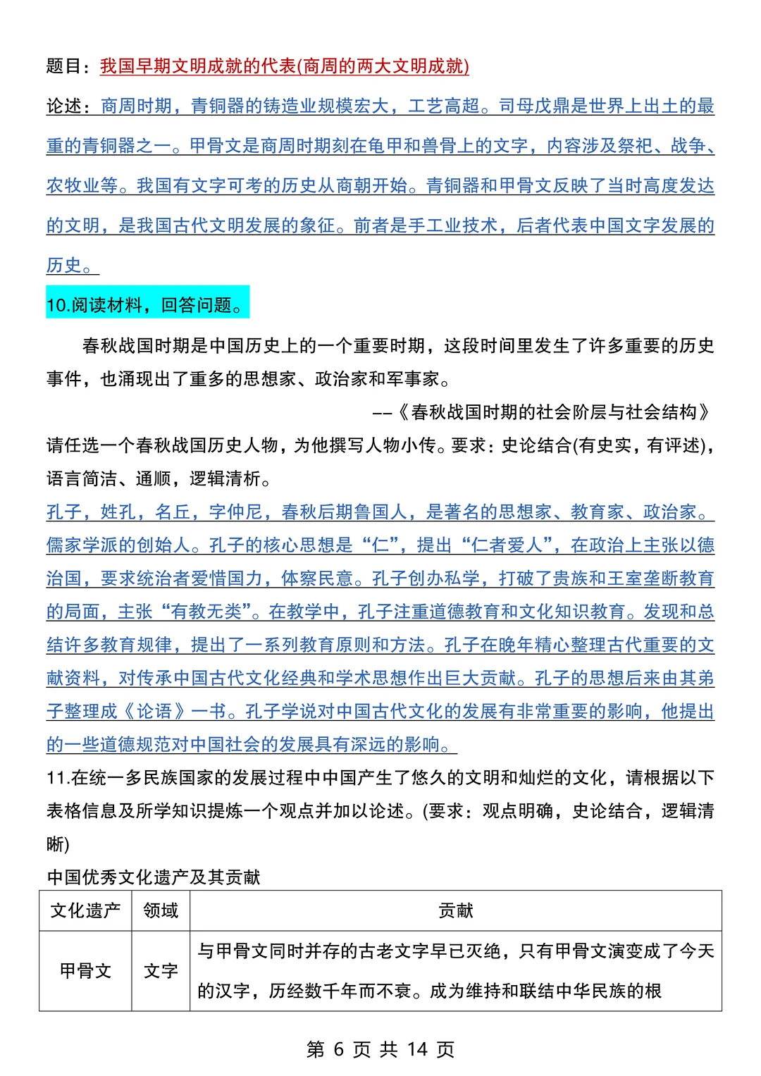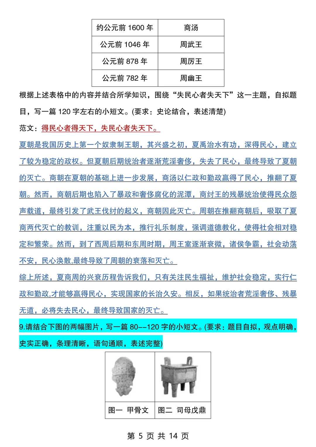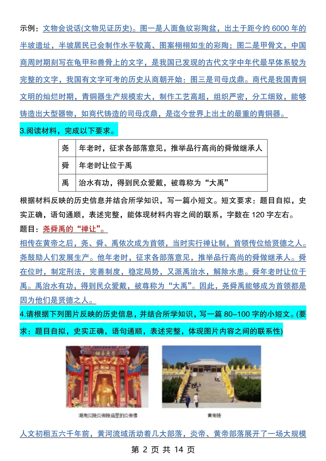 25新七上历史期末考:常考20道材料题