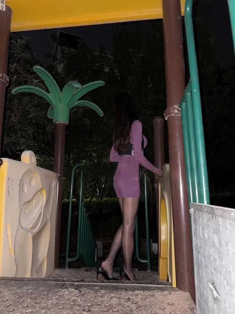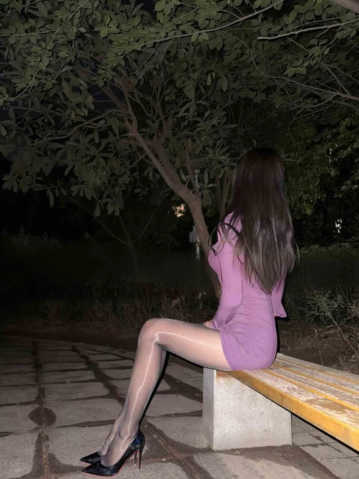 夜晚公园长椅上的时尚女郎,高跟鞋与紫色连衣裙的完美搭配,尽显优雅与神秘。[比心] 户外 高跟鞋 高清美女 御姐