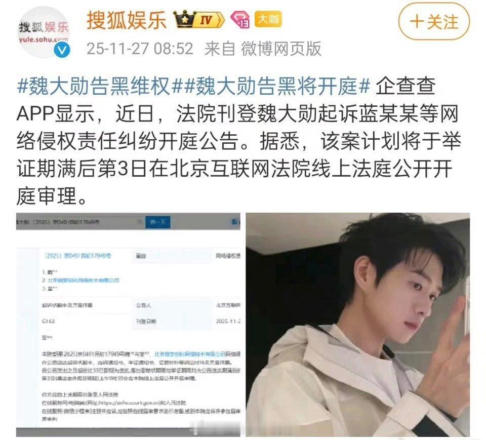 魏大勋 告黑告黑要开庭了,支持大勋维权
