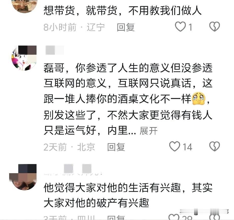 向太带货后,最近又刷到王中磊夫妇频繁发视频秀恩爱,王中磊发了很多成功人士的鸡汤视频,不知道他们是不是要直播带货,穷人带货属于再就业,明星富人已经很有钱了,现在也都去带货,总感觉占了很多普通人的工作资源。