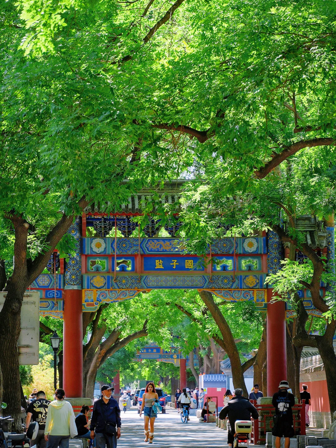 看着阳光透过树梢散在院落里,去感受这里的斑驳市井或文艺清静。街上有全国规格最高的孔庙,和中国古代的最高学府国子监。
