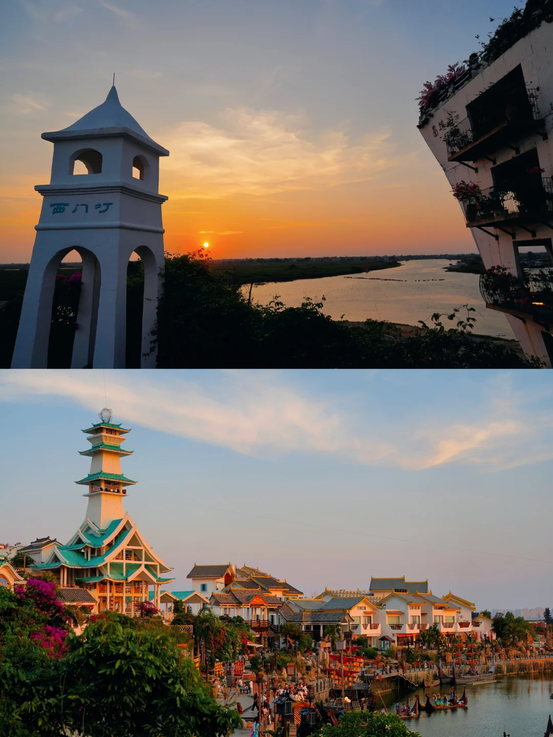 漫步在青石板铺就的古老码头,远处灯塔静静伫立,帆船轻轻摇曳,仿佛时光在此凝固 咸湿的海风裹挟着渔歌号子,恍惚间,耳畔似有商贾吆喝、船工忙碌的喧嚣,丝绸、瓷器与香料的气息隐隐浮动…… 当暮色降临,整片港口被染成橘子汽水般的梦幻色调!波光粼粼的海面碎金浮动,归航的渔船剪影如墨,锈迹斑斑的船锚都似镀上了一层金边…… - 📍海丝首港 🚝北海高铁站出发20分钟即可到达 - 📸推荐打卡机位 ①首港古堡:被称为广西版的“海上布达拉宫”,很是震撼 清晨顺光下的白色城墙很是童话,傍晚晚霞映衬下又别有一番意境 ②西门町:海边悬崖灯塔,与日落晚霞同框 ③海境台:一艘大船带你沉浸式体验海上丝绸之路 ④港司楼:波斯陶壶的钴蓝色,景区内的"显眼包" ⑤海上栈桥:沿着海岸线的浪漫栈桥,晚霞时分来这体验海上自行车🚲很是浪漫 - 🎆夜游打卡项目 ✓《珠还合浦》近景戏剧 ✓《水与火之歌》实景演艺 ✓非遗打铁花、火壶 ✓海上烟花秀、花车巡游 ✓海边篝火晚会、夜浪港迪狂欢