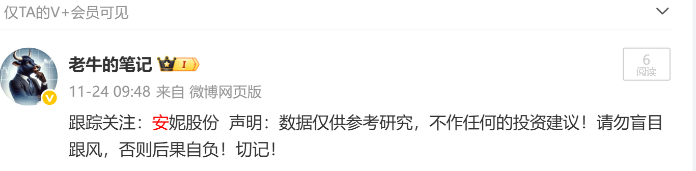 漂亮!11月24日跟踪关注的:安妮股份sz002235[股票]直线上板!